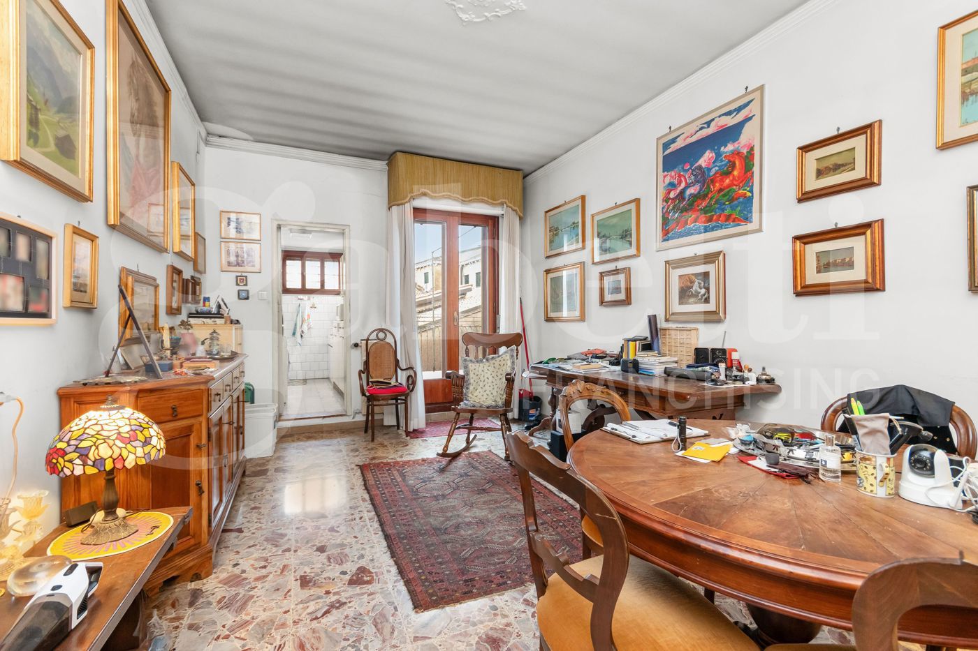 Limmobile conserva elementi depoca e dettagli classici veneziani che ne definiscono il fascino.