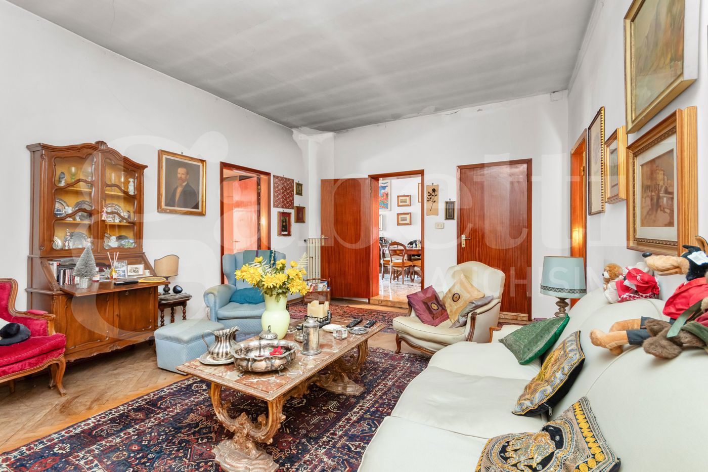 Lappartamento mantiene le finiture storiche e necessita di ristrutturazione, pur essendo in buone condizioni e completamente funzionante.