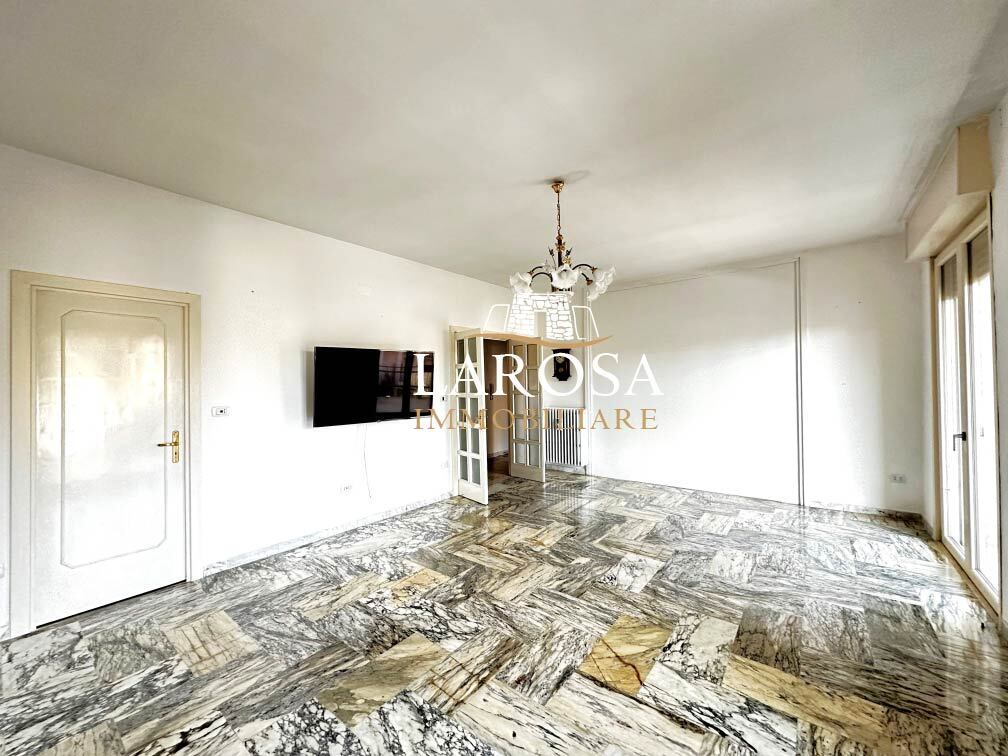 Il soggiorno, arricchito da elementi eleganti e dalla presenza di un grande balcone, rappresenta il cuore della casa, ideale per momenti di relax, convivialità e per ammirare il dinamico panorama del centro cittadino.