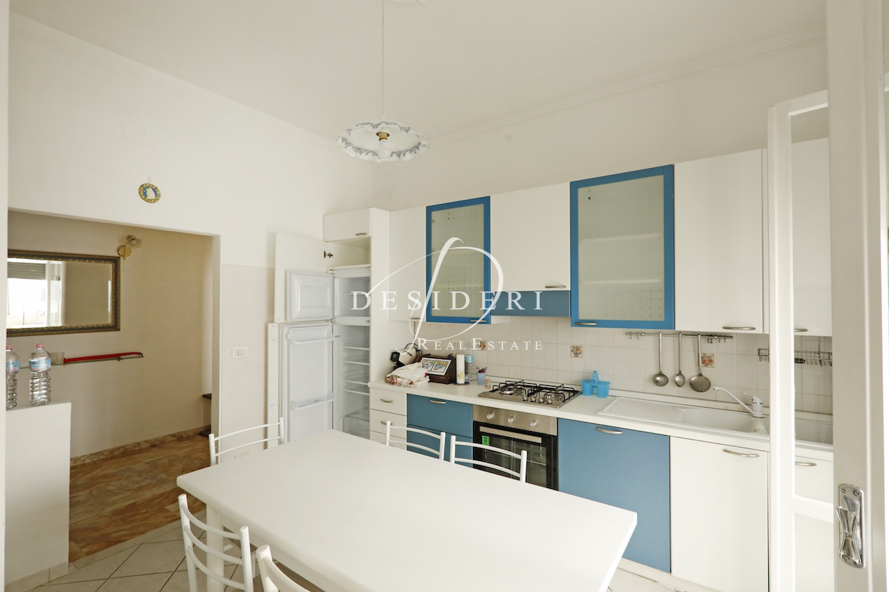 L'immobile, con una metratura totale interna di 130 mq. si compone di: ingresso, cucina abitabile con veranda, spaziosa sala con accesso a balcone, due camere matrimoniali, studio (utilizzabile anche come terza camera) e doppi servizi.