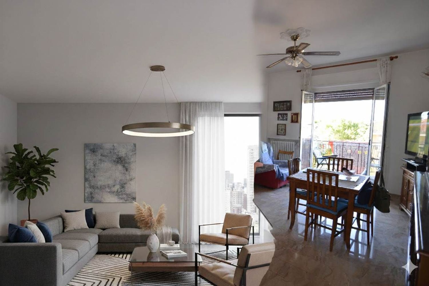 L'appartamento che si affaccia su 3 lati, ha 2 bagni, zona giorno molto ampia e luminosa e le 3 camere ideali per ospitare una coppia con figli, o anche anziani che abbiano necessità di aiuto diurno o notturno.