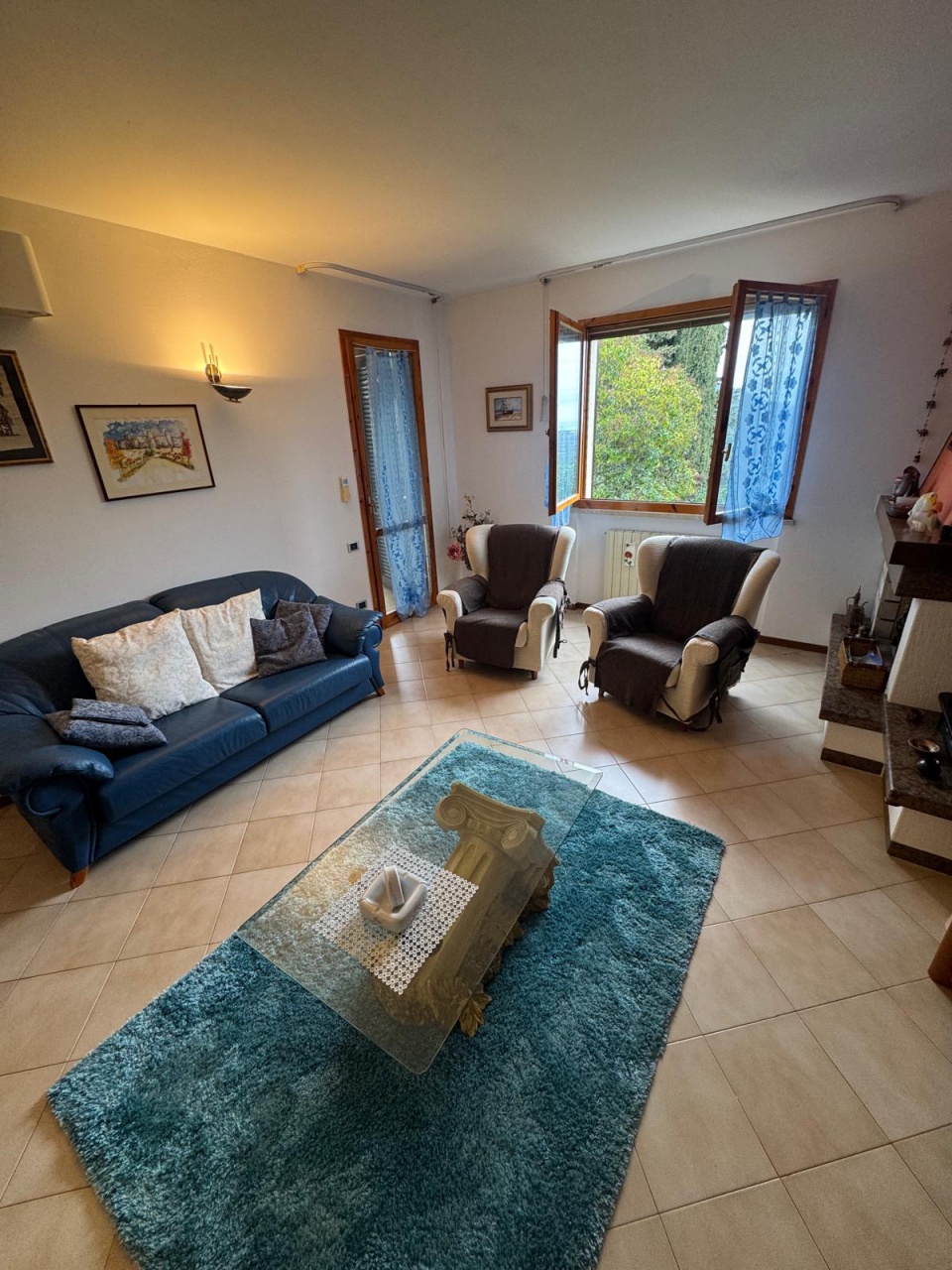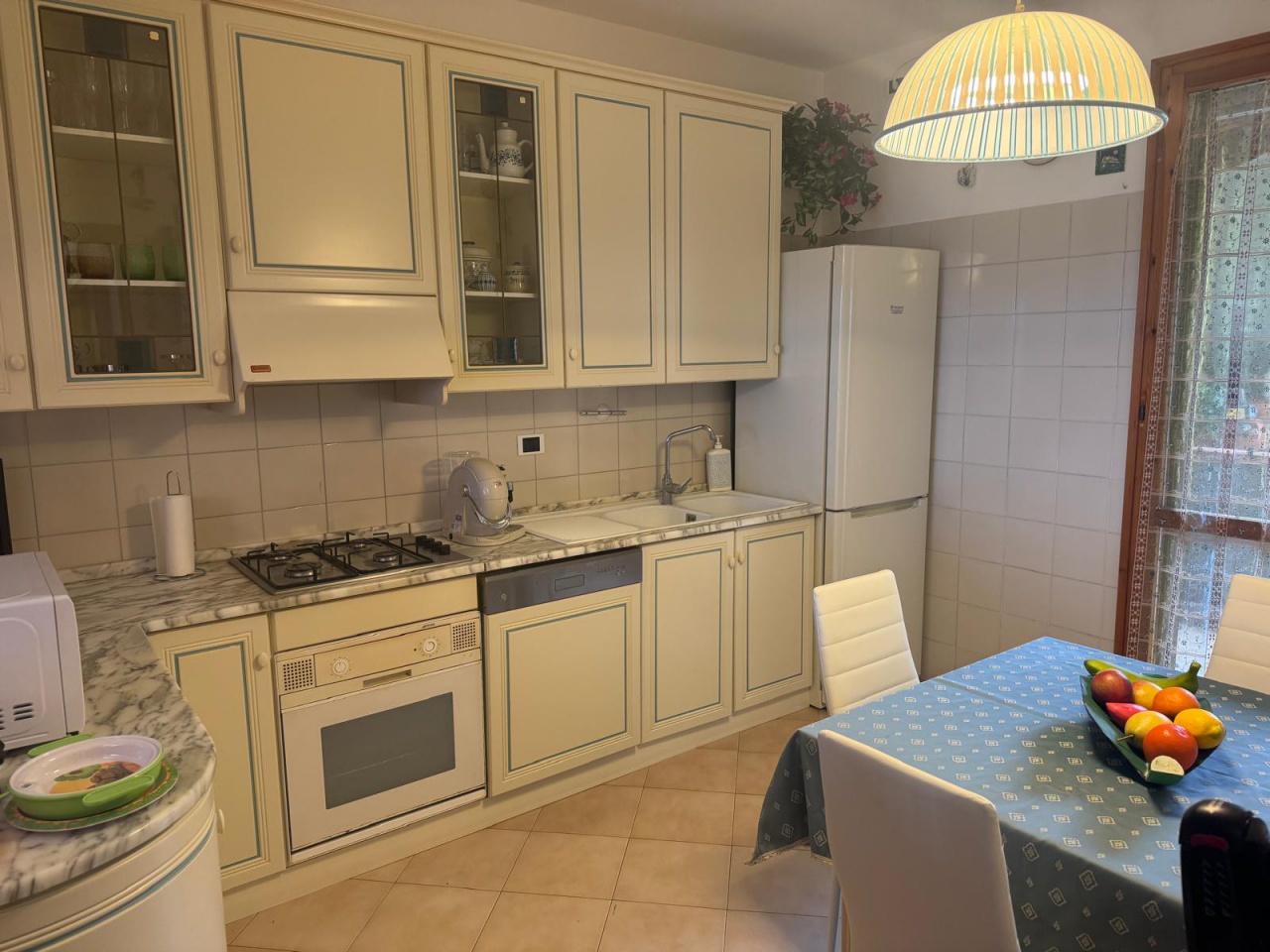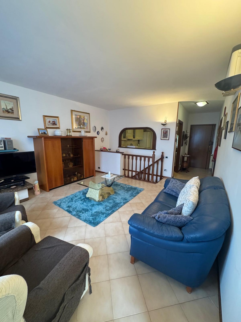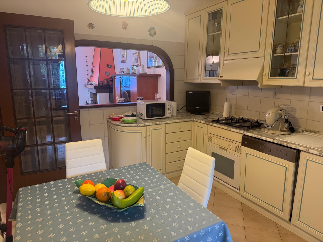 L'immobile è composto dall' ingresso, ampio salone con camino dal quale si accede alla terrazza abitabile con bellissima vista panoramica sulle colline e sul mare, cucina abitabile con accesso al giardino privato, due camere matrimoniali, camerina e doppi servizi.