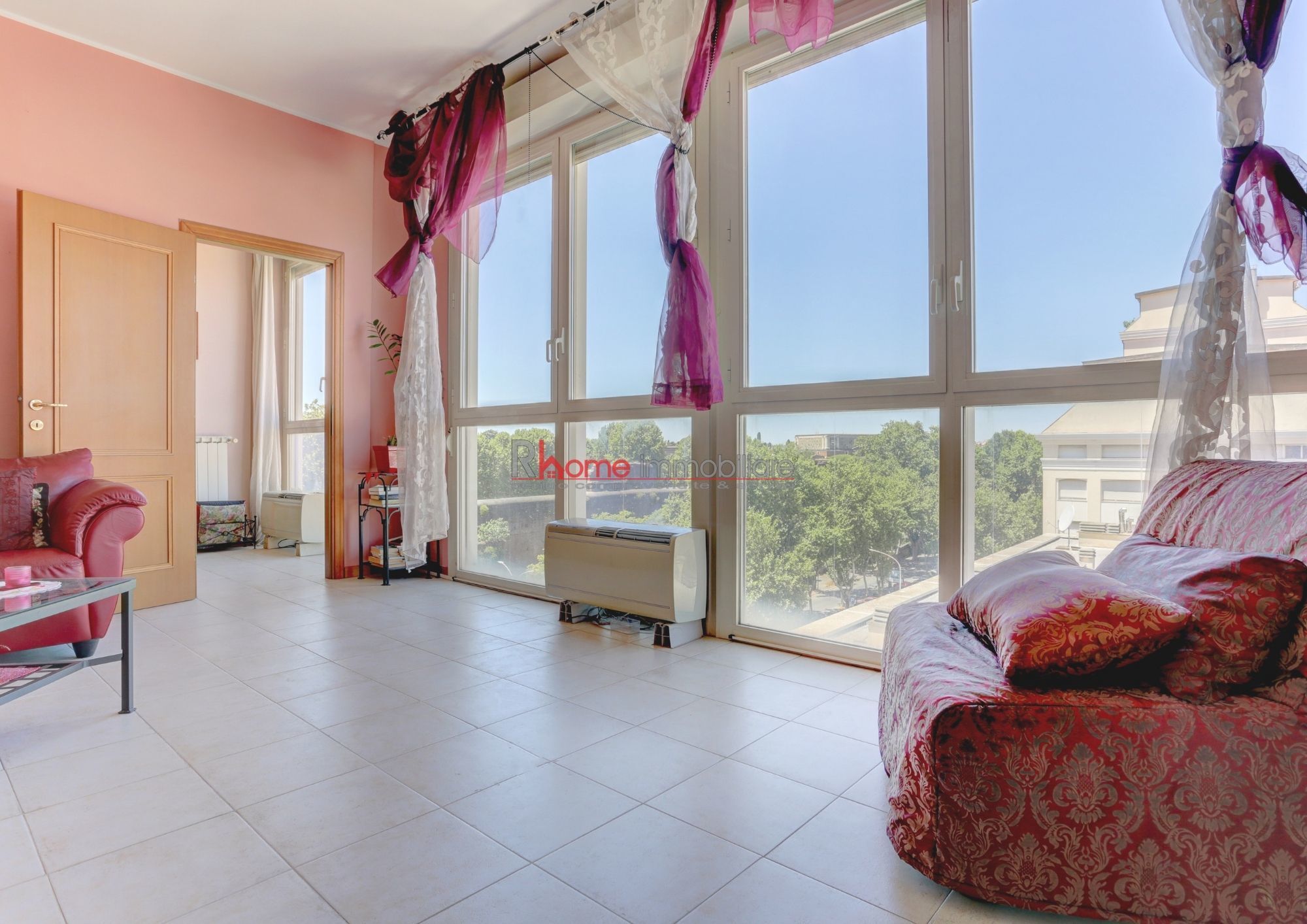 Posto al sesto piano con ascensore, lappartamento di circa 90 mq si distingue per i soffitti alti 3,10 m, le ampie vetrate panoramiche e latmosfera moderna e ariosa che lo caratterizza.