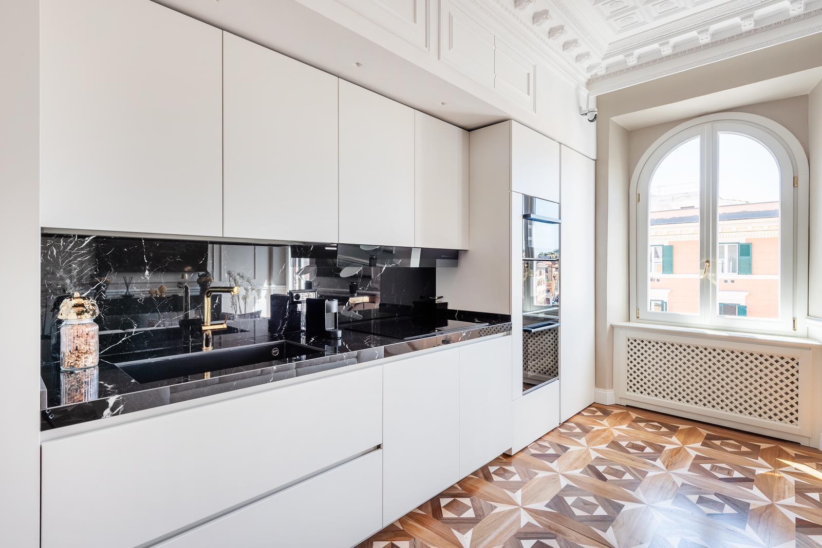 Proponiamo un prestigioso e rifinitissimo ultimo piano con affaccio aperto e panoramico su San Pietro.