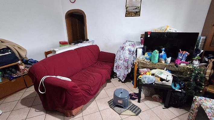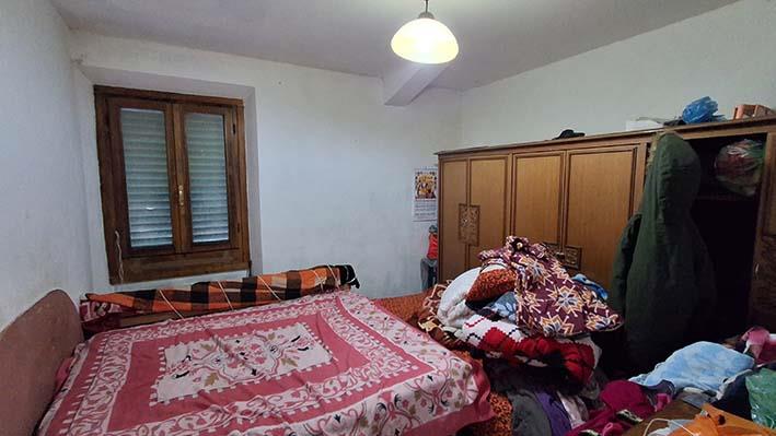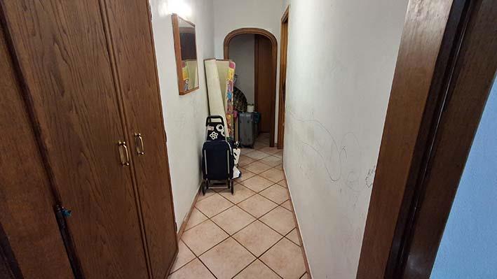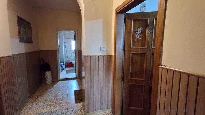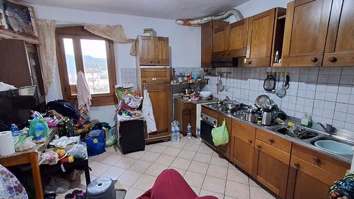 Catastalmente l’alloggio è composto da tre vani principali disposti in sequenza lineare: cucina con accesso diretto dal vano scala e due ulteriori vani contigui, separati da tramezzi interni.