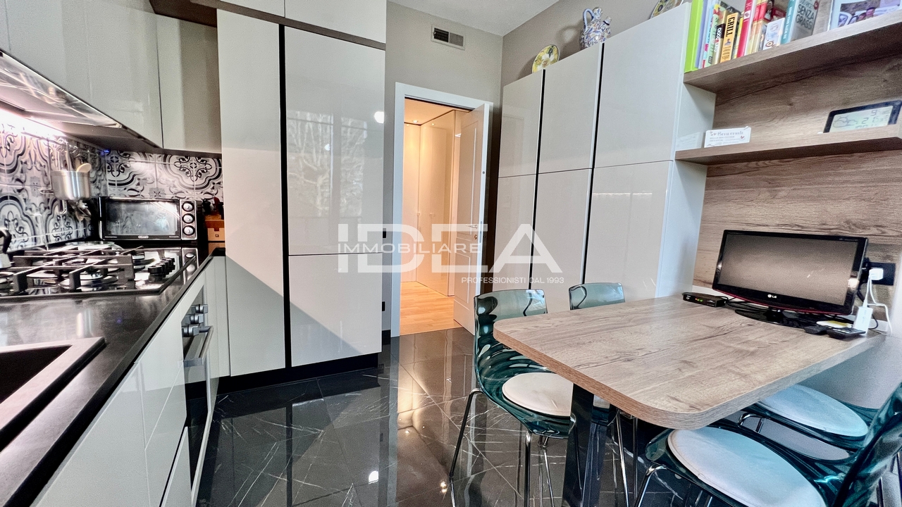 Lappartamento si compone di ingresso, ripostiglio, cucina abitabile con accesso al balcone, salotto, disimpegno notte, bagno con vasca e bagno con doccia entrambi finestrati, camera matrimoniale e camera doppia.