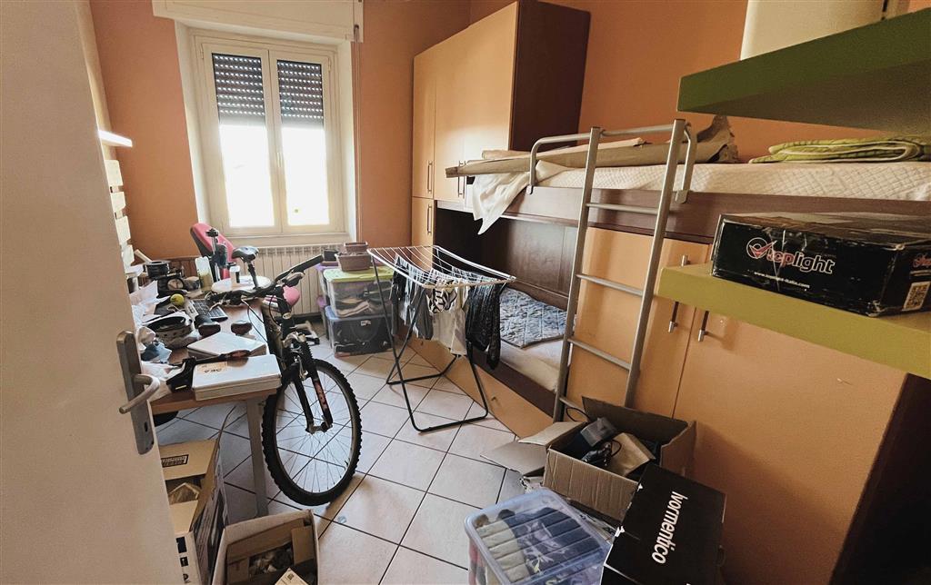 L'appartamento risulta costituito da ingresso/disimpegno, soggiorno con balcone, cucina, due camere, un bagno ed un ripostiglio.
