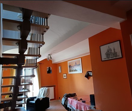 Alloggio dislocato su due livelli piano secondo e piano terzo-sottotetto, collegati tra loro mediante una scala interna, composto al piano secondo di ingresso verso soggiorno, cucina, ripostiglio, due camere, disimpegno e bagno e al piano terzo-sottotetto di un vano unico destinato a camera e bagno.