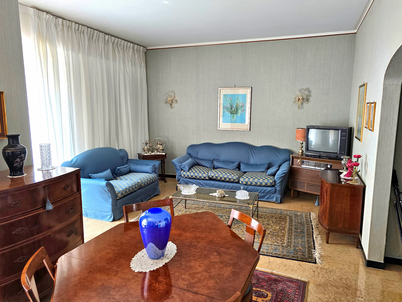 La distribuzione interna attuale è composta ingresso, ampio soggiorno con zona pranzo, cucina abitabile, due camere matrimoniali, una cameretta, due bagni finestrati e un comodo ripostiglio.