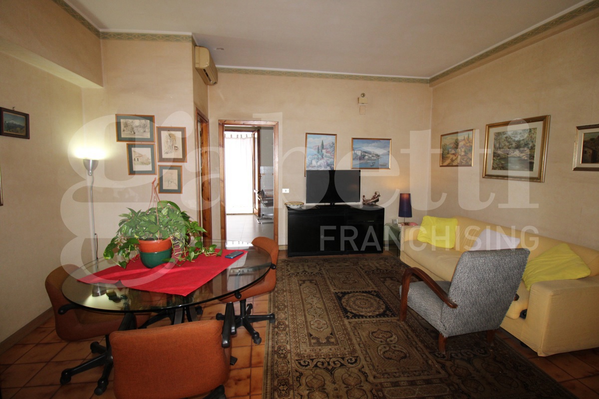 Inoltre grazie anche alla vicinanza con le localit turistiche di Acitrezza e Aci Castello che favoriscono la presenza di tanti visitatori durante l'anno, l'appartamento si presenta ideale sia per uso abitativo ma anche per attivit ricettive turistiche come casa vacanza o B&B. Gli infissi in legno con persiane e vetro semplice offrono un'ottima luminosit e comfort negli ambienti ben disposti caratterizzati da : salone, due camere, cucina abitabile, un bagno, una lavanderia con servizio.