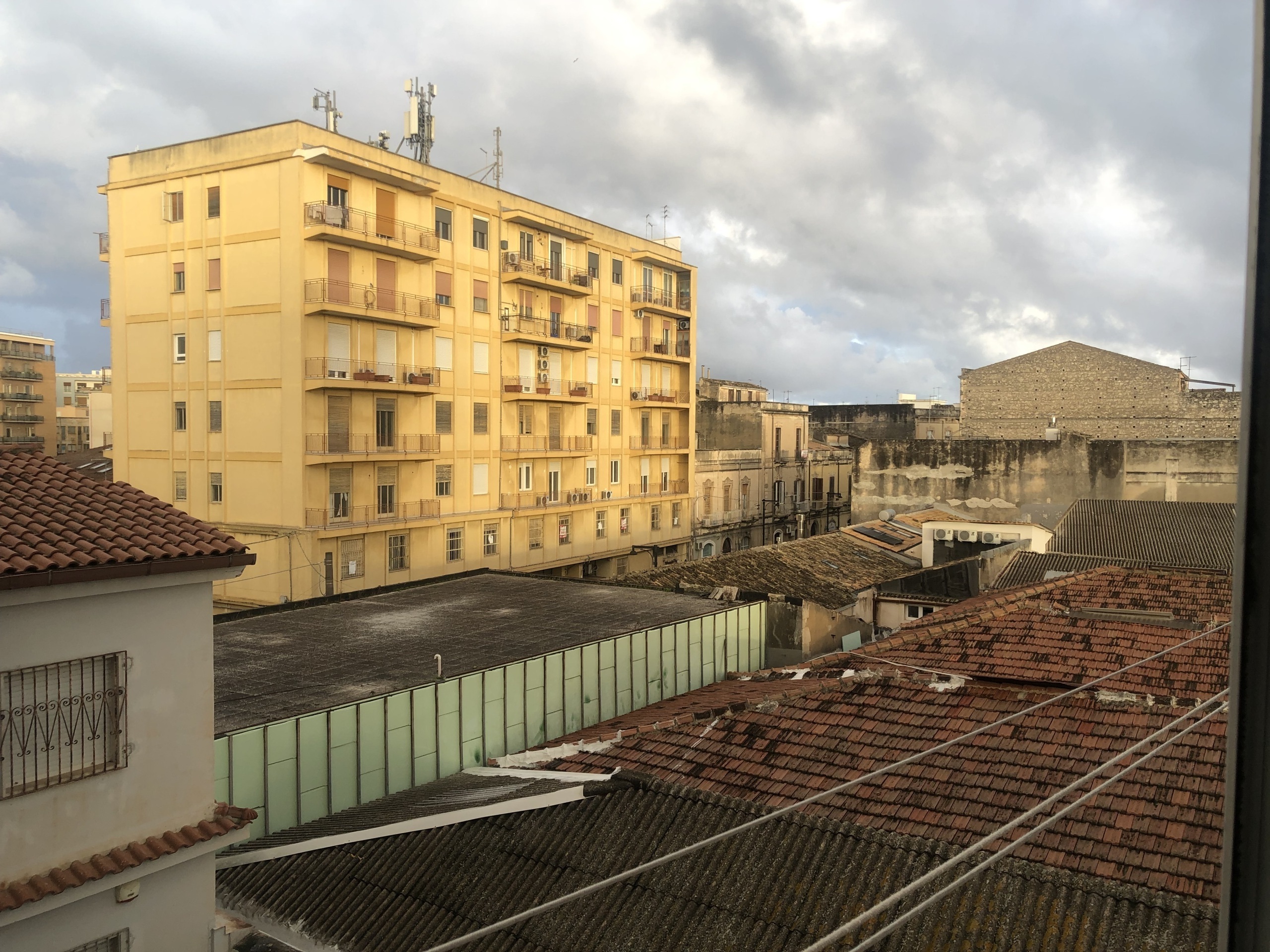 L'appartamento molto luminoso e con doppia esposizone è composto da un ingresso, un bel salone doppio con incantevole vista mare sul porto di Siracusa, una cucina abitabile, due camere matrimoniali, uno studio o terza camera, ripostiglio, bagno, doppio servizio, un balcone e una bella veranda al momento chiusa a vetri.