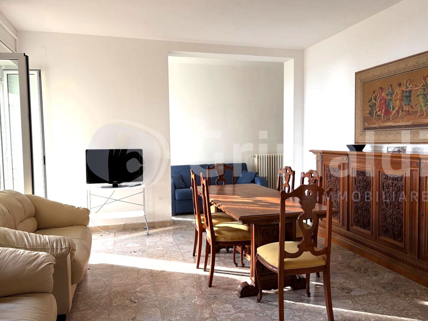 In una delle zone pi richieste di Gallipoli, a pochi passi dal mare e dalle prime spiagge attrezzate, proponiamo in vendita luminoso appartamento fronte mare al quinto piano, situato in contesto condominiale con ascensore, curato e dotato di ampio verde, che rendono lambiente piacevole e tranquillo, Limmobile, di circa 125 mq interni, si distingue per la splendida vista mare visibile gi dallinterno dellabitazione, un elemento raro e di grande valore che regala luce e panorama alla zona living.