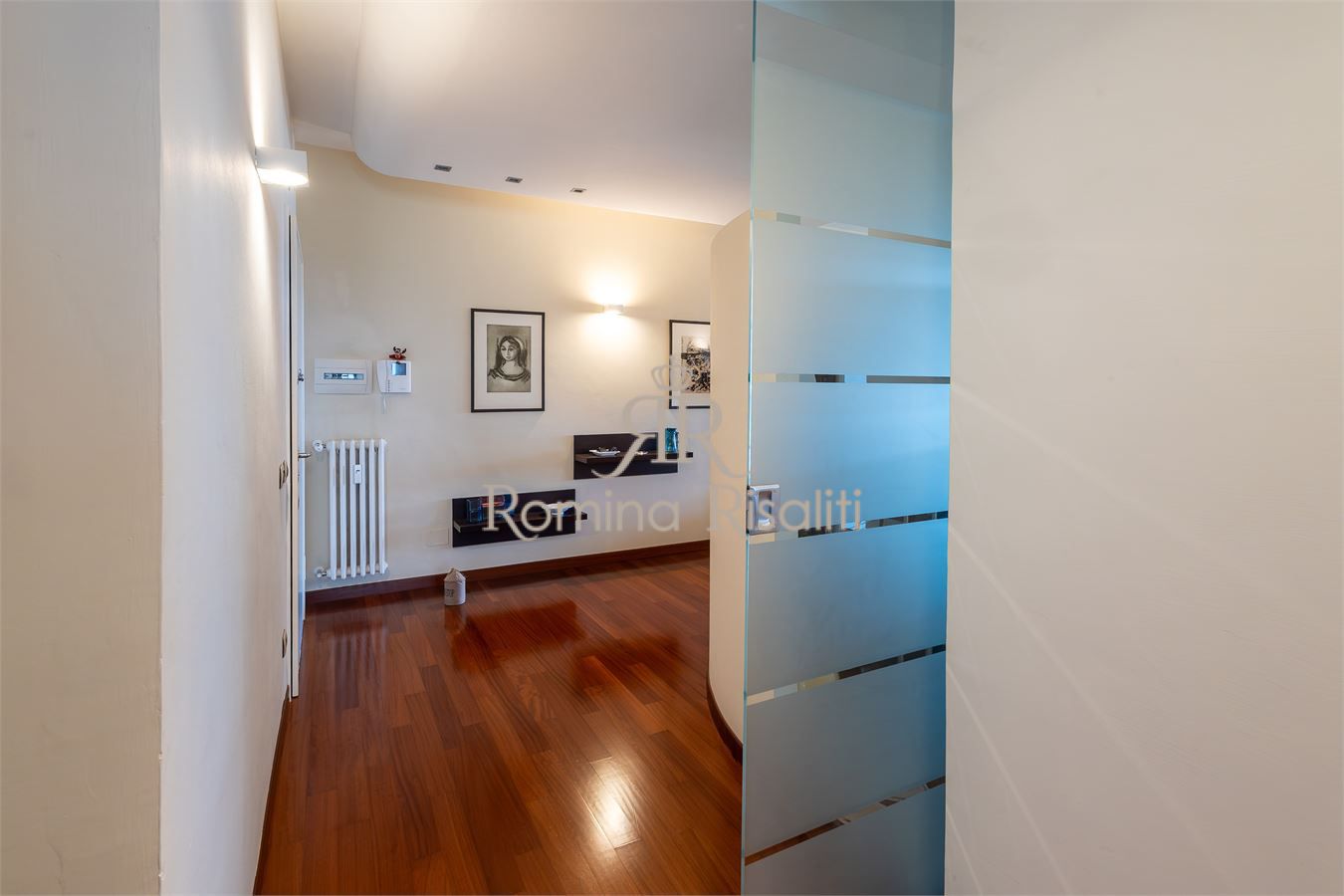 \nNel cuore del quartiere più esclusivo , a pochi passi dall'Accademia e dal lungomare, proponiamo un appartamento di 170 mq di alta rappresentanza e dall'eleganza esclusiva situato al quinto piano di un condominio molto signorile con doppio ascensore e portiere.\nL' immobile è stato oggetto di una ristrutturazione totale e raffinata, curata in ogni dettaglio con finiture di lusso .\nLa distribuzione degli spazi interni, razionale e moderna separa perfettamente la zona giorno dalla zona notte:\nZona giorno: ingresso scenografico che conduce ad un salone doppio di grande impatto con accesso diretto al balcone con spazi profondi e abitabili con una vista mare mozzafiato e ideale per godersi il panorama, un comodo guardaroba, e l'ampia sala da pranzo separata.