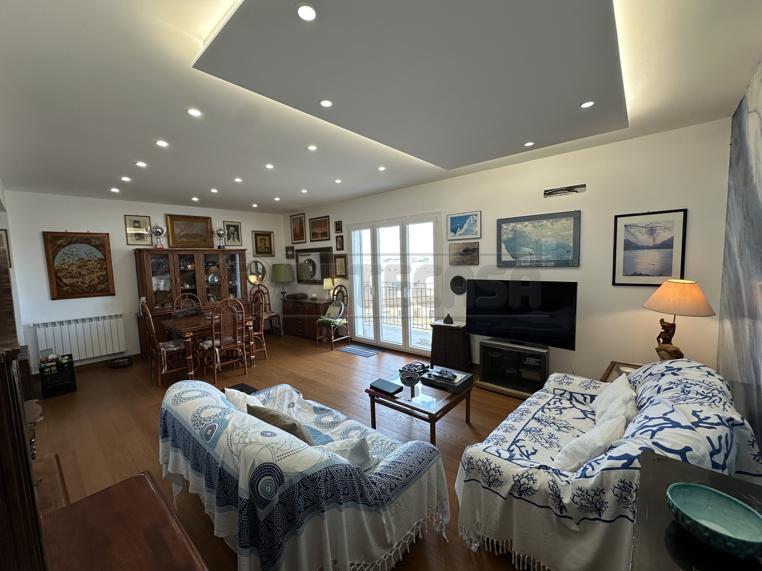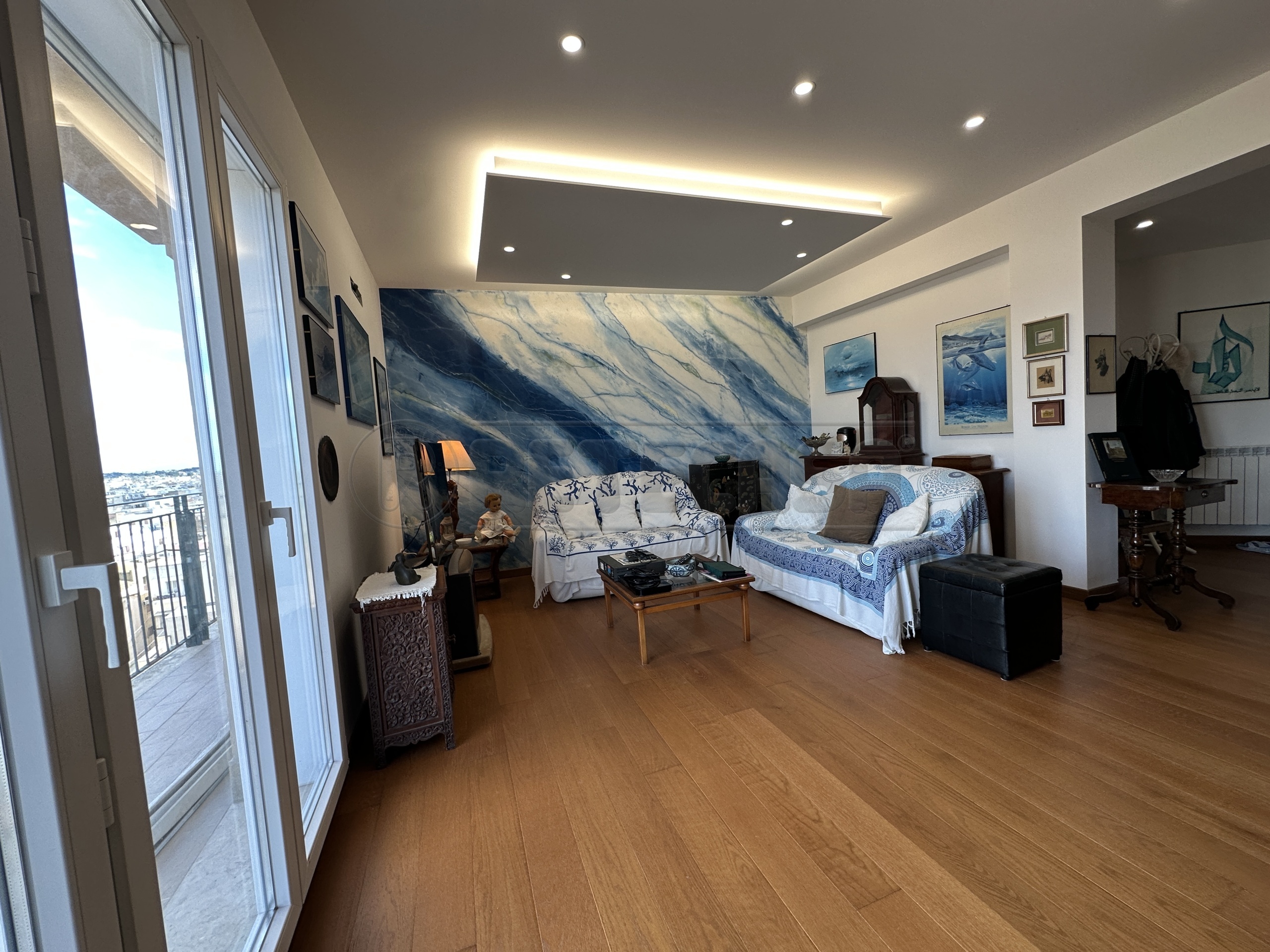 Entrando da scala condominiale o da ascensore, si accede al settimo piano, dove insiste l' appartamento che e' cosi composto: ingresso, un ampio e luminoso salone con accesso diretto al balcone, ampia cucina con lavanderia annessa in vetro rendendola cosi ancora piu' luminosa, n°2 bagni con finestra e ampia doccia, n°3 camere da letto con vista mare, tra cui la principale con bagno in camera ed un comodo ripostiglio a scomparsa.