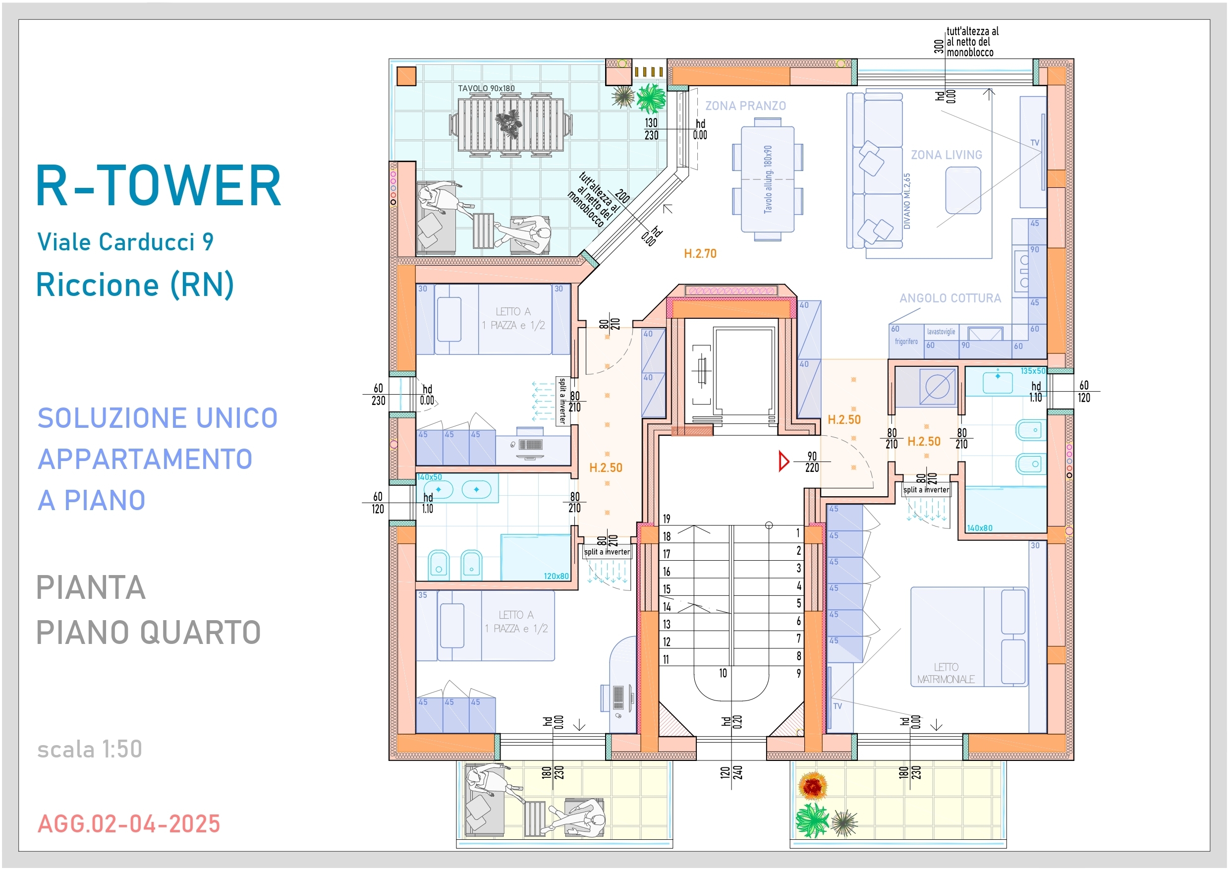 ULTIMA DISPONIBILITA' : A Riccione, in Viale Carducci n. 9, nel cuore della zona più ambita, a soli 100 mt. dal mare, tra il portocanale e Viale Ceccarini, sorge un nuovo e raffinato progetto residenziale frutto della completa demolizione di un hotel, per dare vita a un edificio moderno, green, elegante sviluppato su otto piani, concepito per offrire unesperienza abitativa unica con ampia terrazza abitabile vista mare. Al quarto piano proponiamo una prestigiosa e unica unità abitativa che si distingue per spazi ampi, luminosi e completamente personalizzabili.