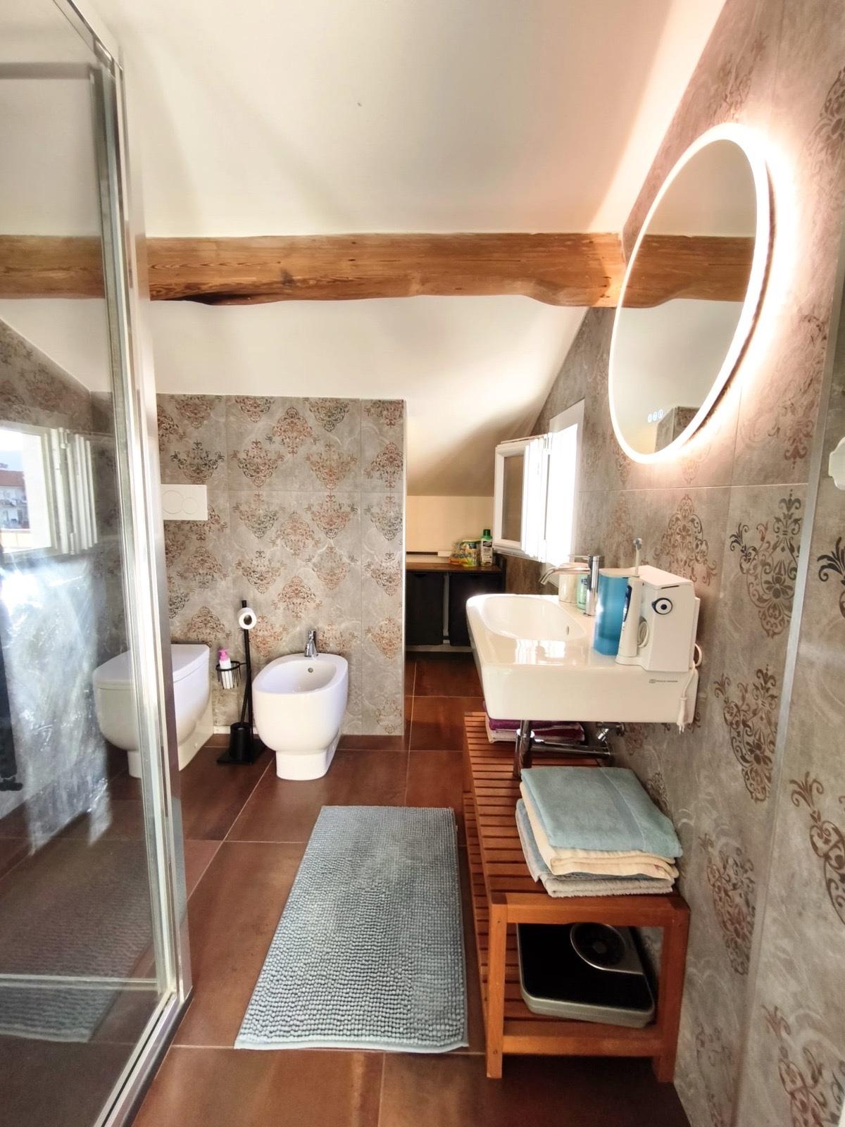 L'ingresso tradizionale conduce a un ampio soggiorno che si affaccia su una terrazza panoramica, regalando viste mozzafiato sulla città. La cucina è attrezzata e perfetta per chi ama cucinare, mentre le camere da letto sono spaziose e confortevoli.