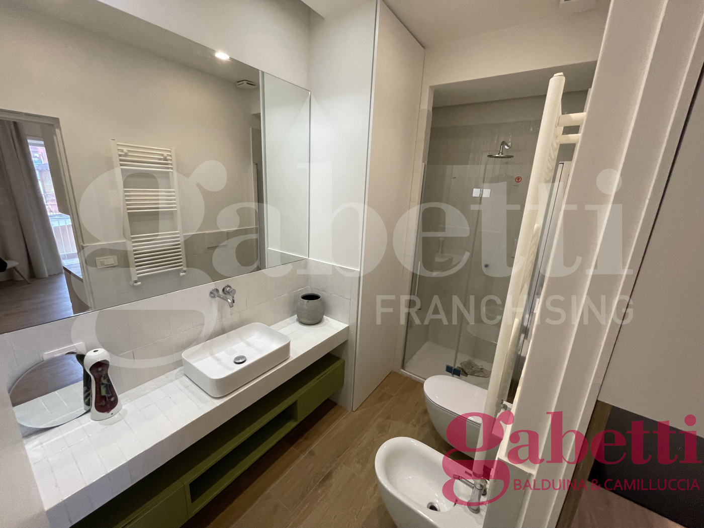 Parzialmente arredato 1.350,00 - GABETTI Agenzia Balduina - 06.35402994 - 331.3146178 - Peculiarit: ristrutturato, pavimento uniforme in gres effetto legno in tutto lappartamento, portone dingresso blindato, infissi in PVC con doppio vetro, riscaldamento autonomo, climatizzazione, parzialmente arredato.
