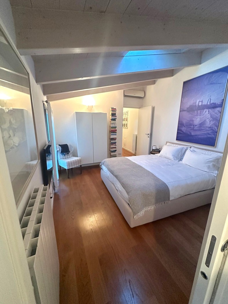La zona notte garantisce massimo comfort e privacy: la camera matrimoniale una vera suite, completa di bagno privato e cabina armadio, pensata per offrire uno spazio riservato ed elegante.
