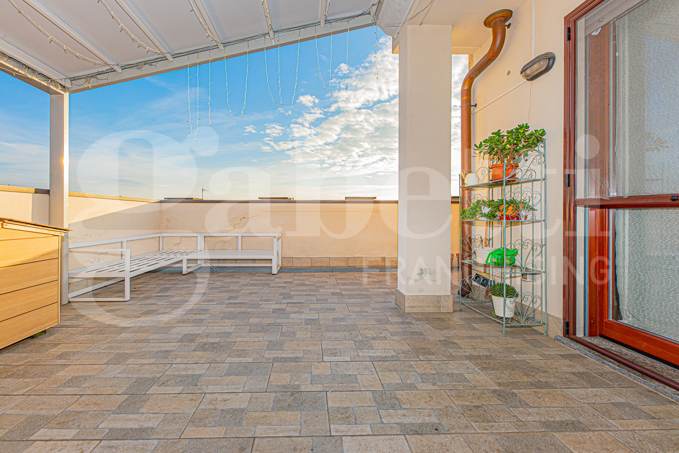 La metratura interna permette una distribuzione armoniosa degli arredi ed elemento distintivo della propriet e lo straordinario terrazzo perimetrale sui tre lati, ideale per vivere a pieno momenti di relax con amici.