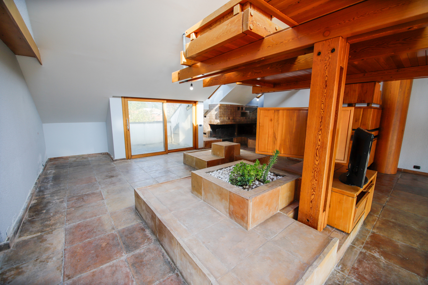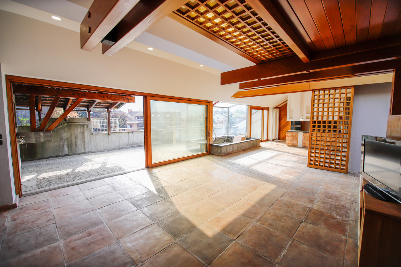 L'ingresso living su un meraviglioso salone triplo con camino funzionante, di qui un'ampia vetrata ci porta sullo splendido terrazzo tra l'altro dotato di un barbecue in muratura.