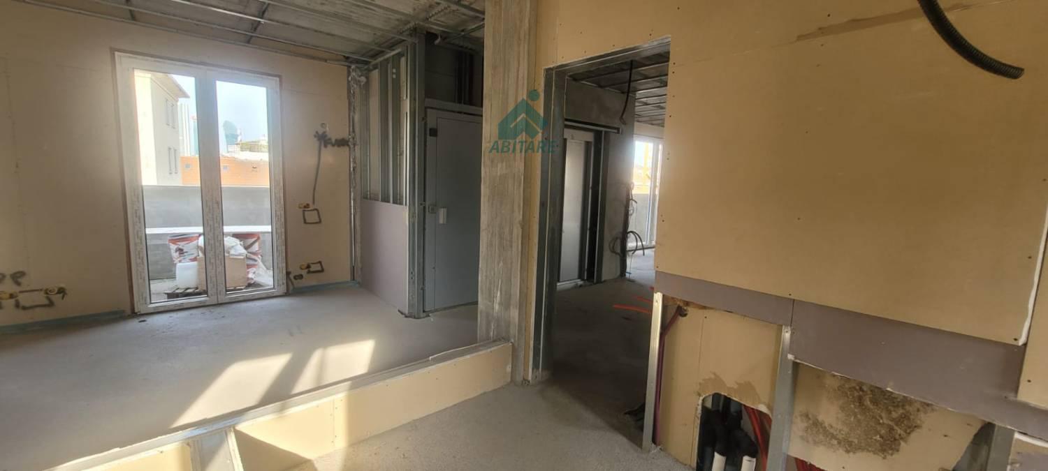 L'attico occupa completamente il quinto e sesto piano (solarium) della nuova costruzione; i due piani sono collegati da scala e ascensore interni.