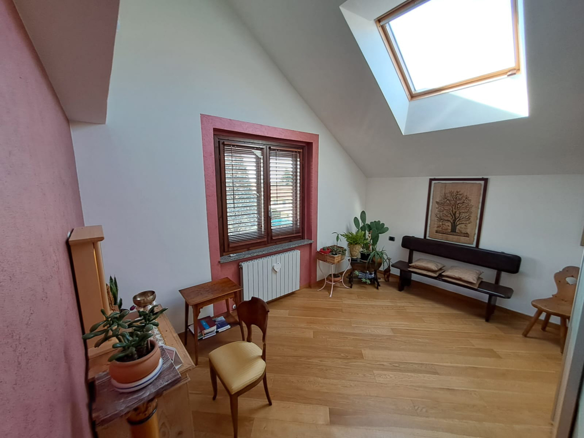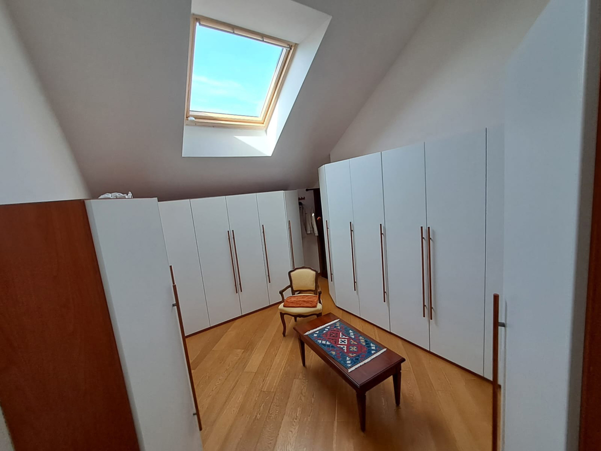 L'appartamento molto luminoso e si presenta in ottimo stato essendo stato completamente ristrutturato nel 2017 con finiture di pregio ed dotato di molti comfort e accessori tra cui: aria condizionata, zanzariere, velux motorizzati con tapparella anch'essa motorizzata, video citofono, impianto di antifurto interno/esterno sia perimetrale che volumetrico, caldaia termoautonoma a condensazione di ultima generazione, caminetto Bio etanolo, impianto TV centralizzato in ogni locale e cassaforte Classe Energetica: C kwh 55,00. L'appartamento dotato di n. 1 ampio box e di una cantina.