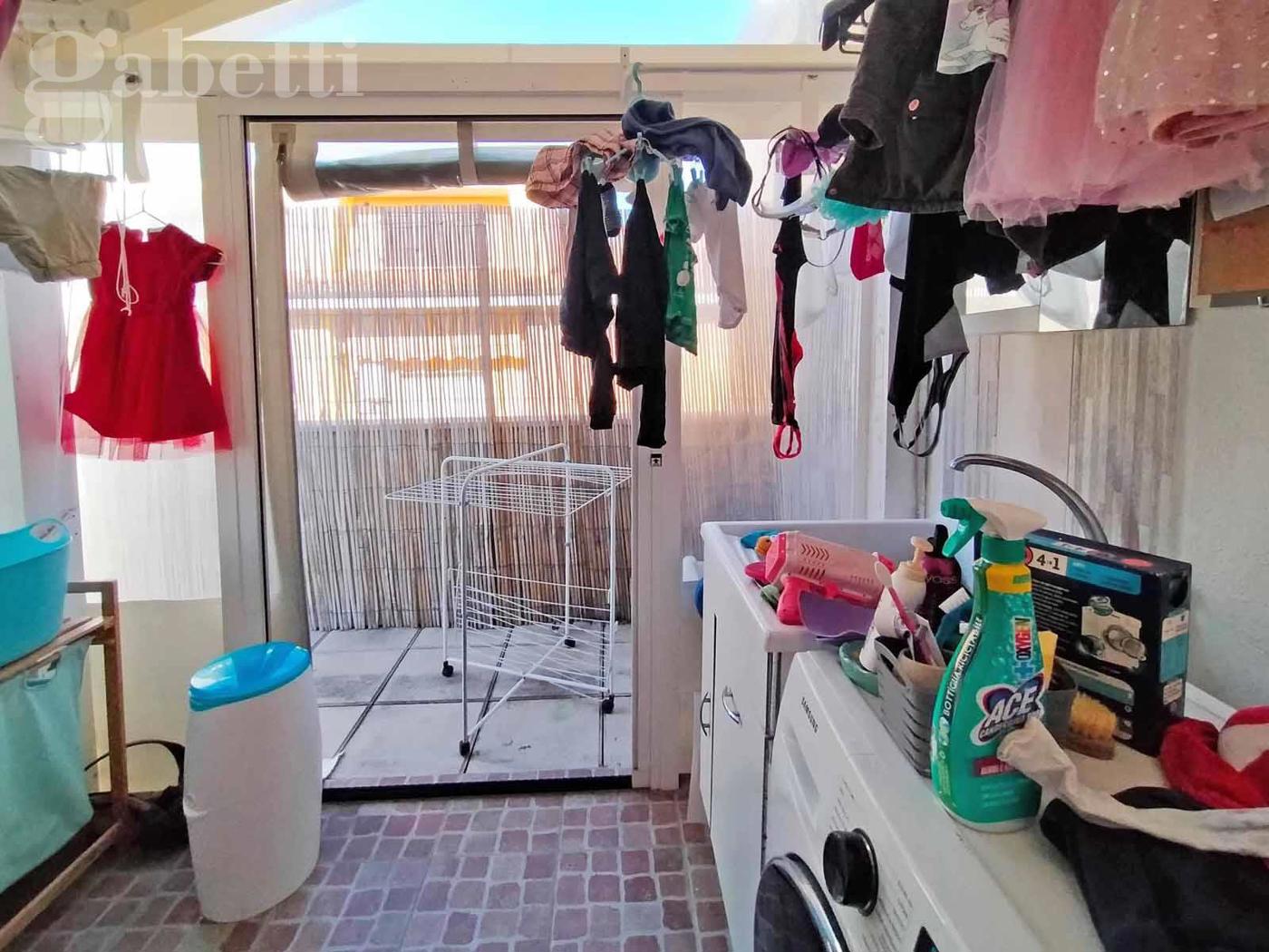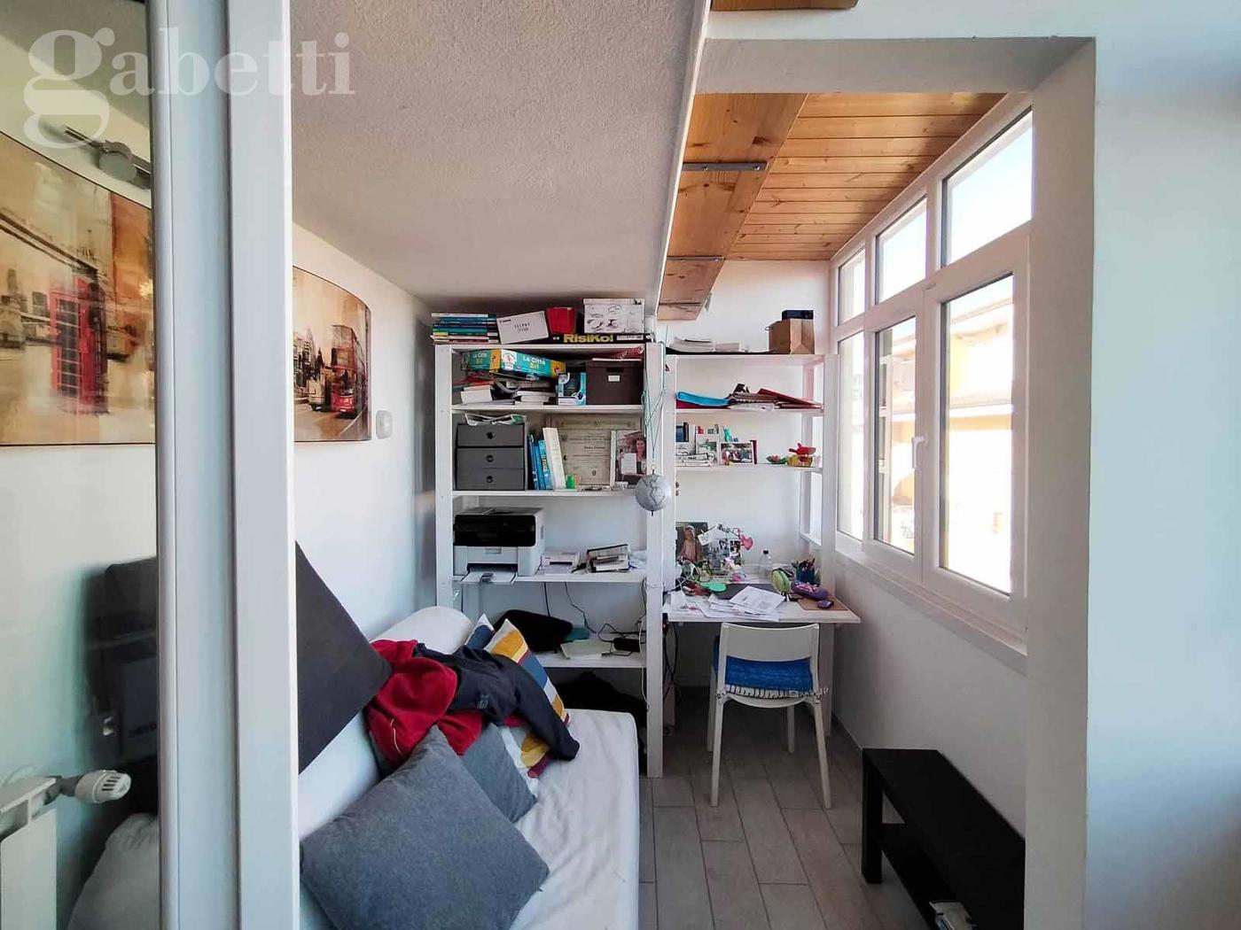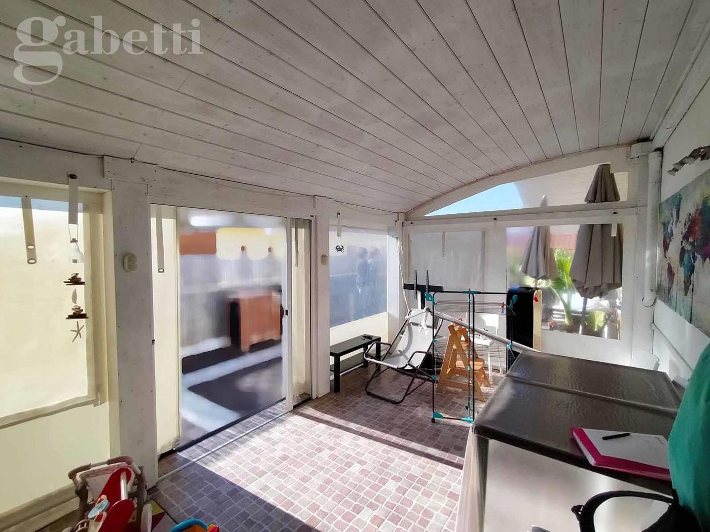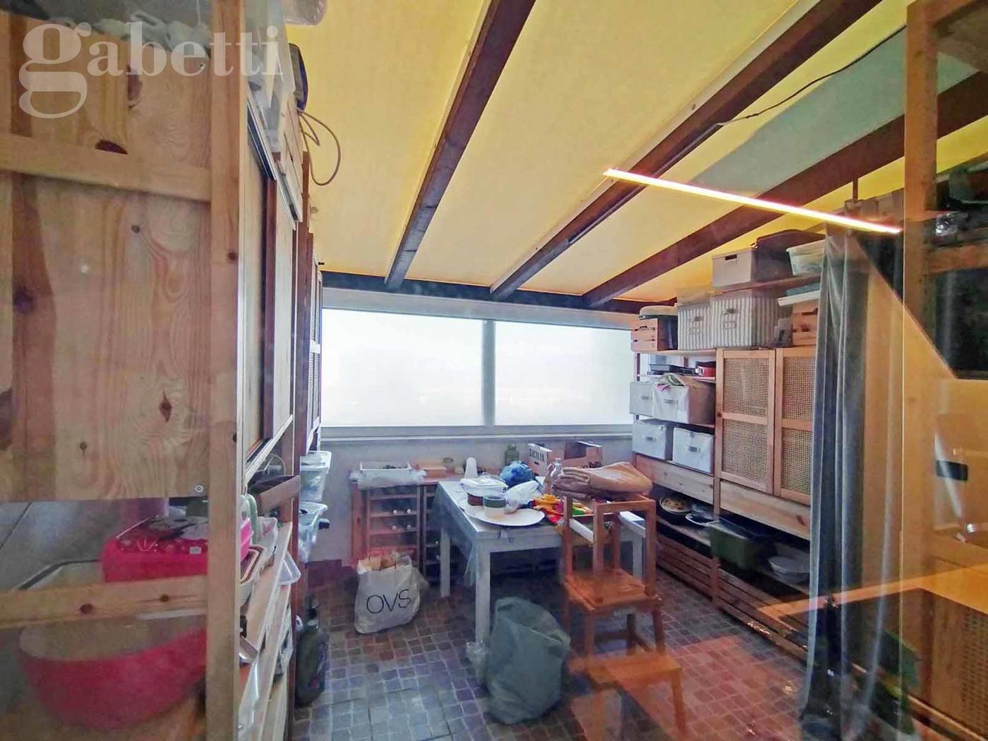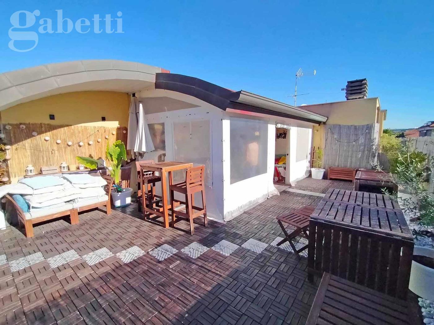 APPARTAMENTO A SENIGALLIA: Cesanella, attico mq. 86 (soggiorno/cucina, matrimoniale con bagno e vano guardaroba, cameretta, bagno con doccia) + mq. 40 verande, mq. 76 terrazzo + mq. 16 garage.