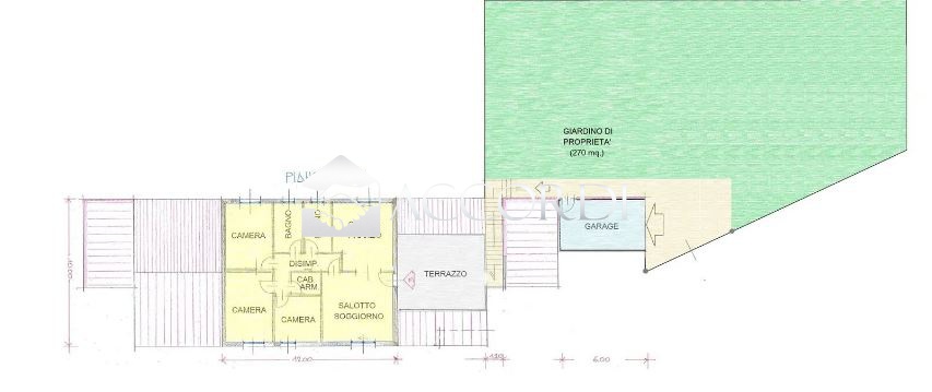 Dispone anche di un garage singolo (20mq) e due posti auto scoperti, oltre ad un giardino privato di circa 280mq.