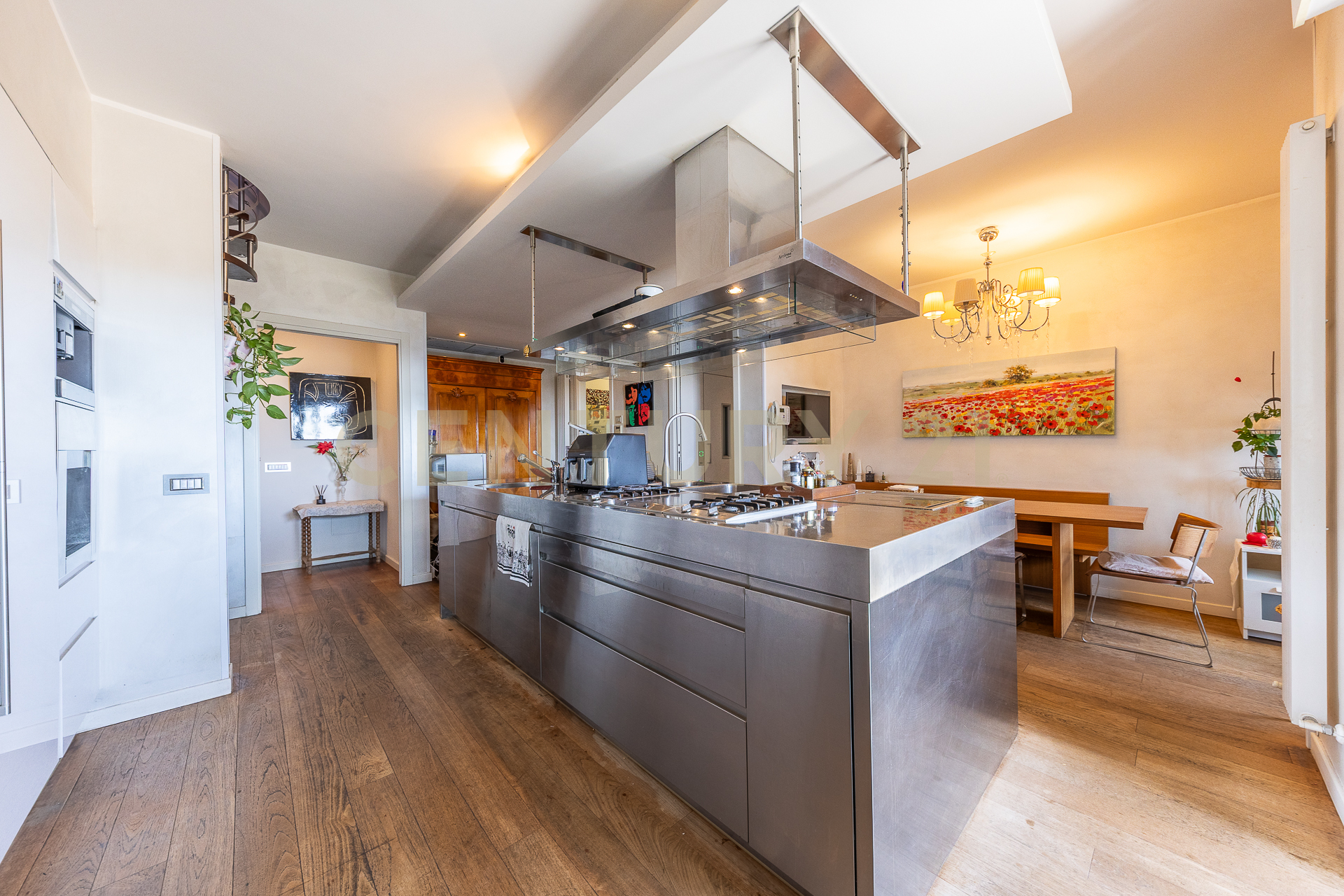 Allingresso al primo livello si viene accolti da una cucina con isola ampia e di design Arclinea estremamente attrezzata, due camere da letto, zona lavanderia e doppi servizi di cui uno en-suite.