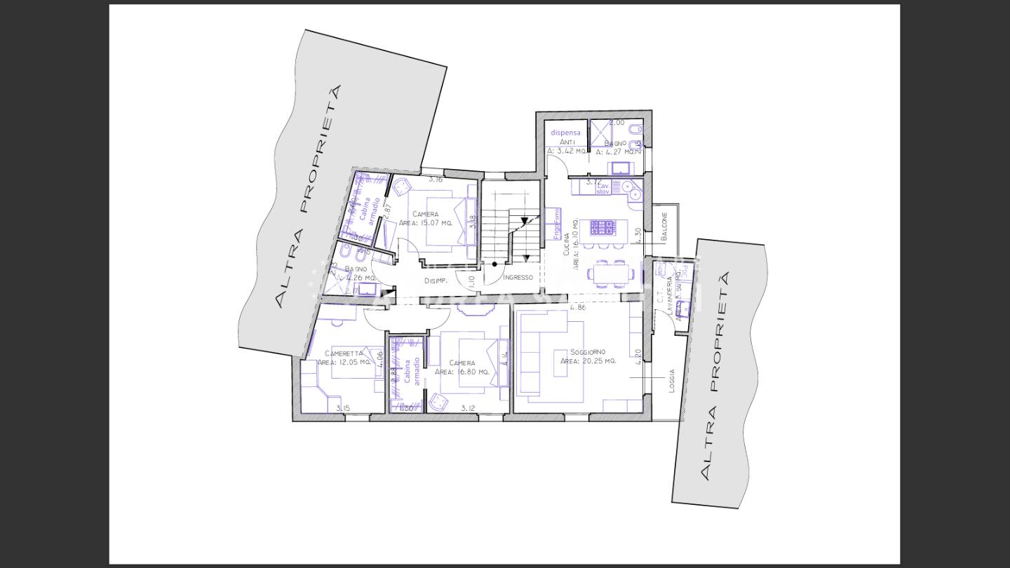 Salendo al secondo ed ultimo piano raggiungiamo l'appartamento che si compone in: ingresso, cucina abitabile con balcone, ampio soggiorno con ulteriore balcone corredato da locale tecnico, bagno, disimpegno notte, 3 ampie camere di cui due con cabina armdi e il secondo bagno della casa. Salendo ulteriormente al piano sottotetto, troviamo due vani adibiti a sottotetto semiabitabile con terrazzo a tasca abitabile con vista panoramica sulla piazza principale.