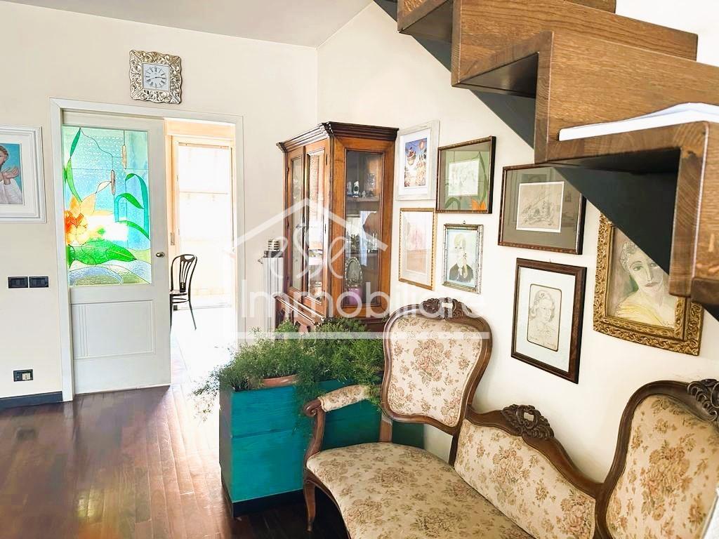 Dalla zona giorno, tramite scala in legno, si accede alla mansarda composta da salotto, camera da letto matrimoniale, entrambe con accesso a terrazza di 14 mq e terzo servizio igienico finestrato e con vasca idromassaggio.