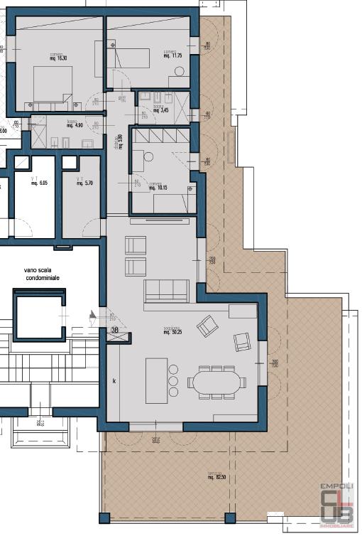 ***.*******.** F/0753 - CAPOLUOGO - Empoli - Rif. F/0753 Moderno e signorile attico, libero su tre lati di totali mq 125 lordi distribuito su unico livello; l'oggetto è ubicato in zona strategica della cittadina e progettato nel dettaglio per la comodità quotidiana della famiglia con figli grazie ai ben studiati spazi interni, agli accessori e agli splendidi spazi esterni come il terrazzo principale di circa mq 80 ed un ulteriore terrazzo nella zona notte di circa 5 mq. Limmobile è così composto: accesso alla proprietà tramite elegante vano scala condominiale servito da ascensore; al piano secondo, nonché ultimo, si trova l abitazione così costituita: ingresso/disimpegno, zona living/divani, a seguire la cucina (open con il soggiorno ma volendo anche separabile perché defilata) con attiguo vano tecnico parzialmente utilizzabile a dispensa/lavanderia; disimpegno, bagno, tre camere da letto e secondo servizio igienico.