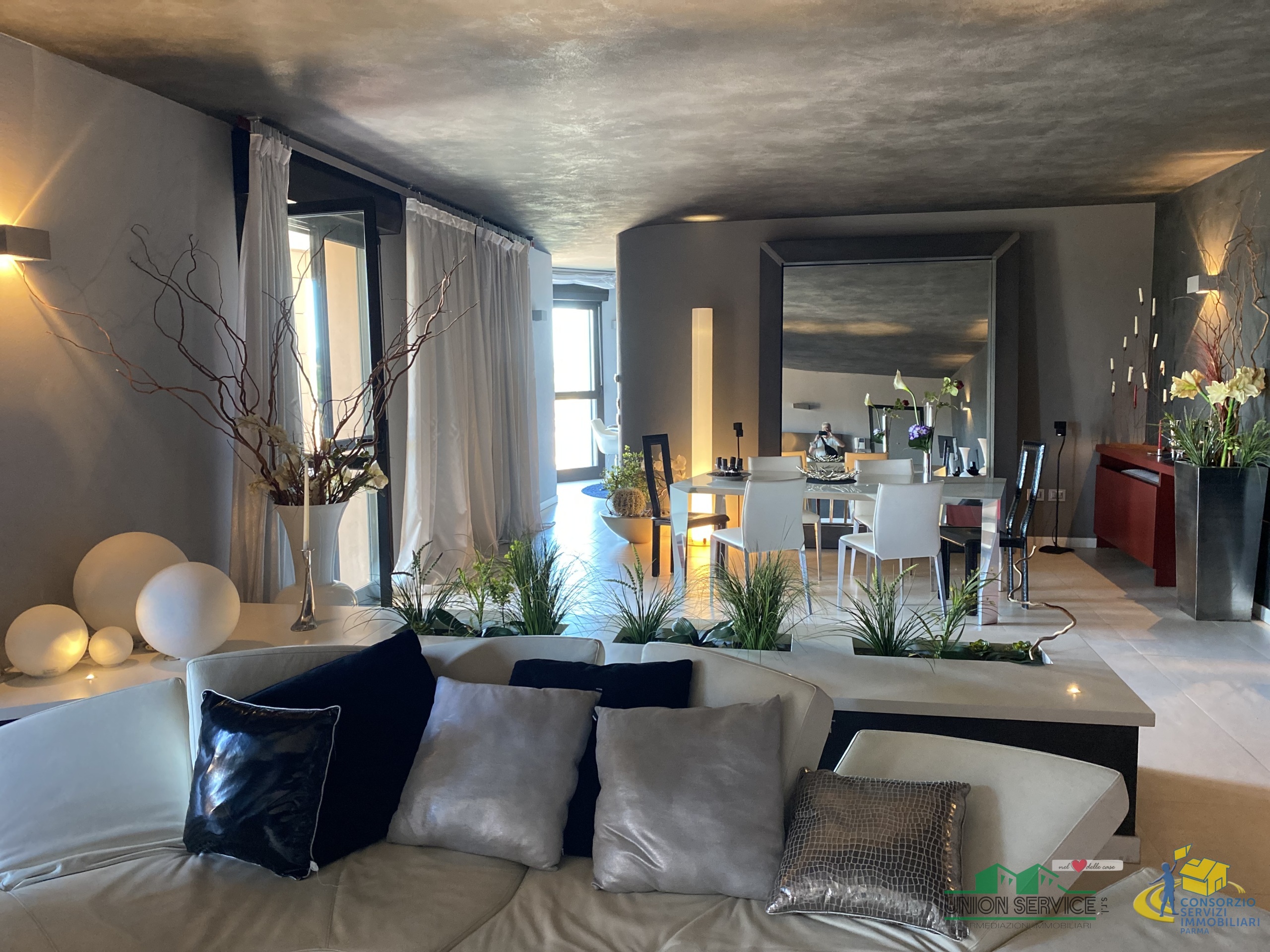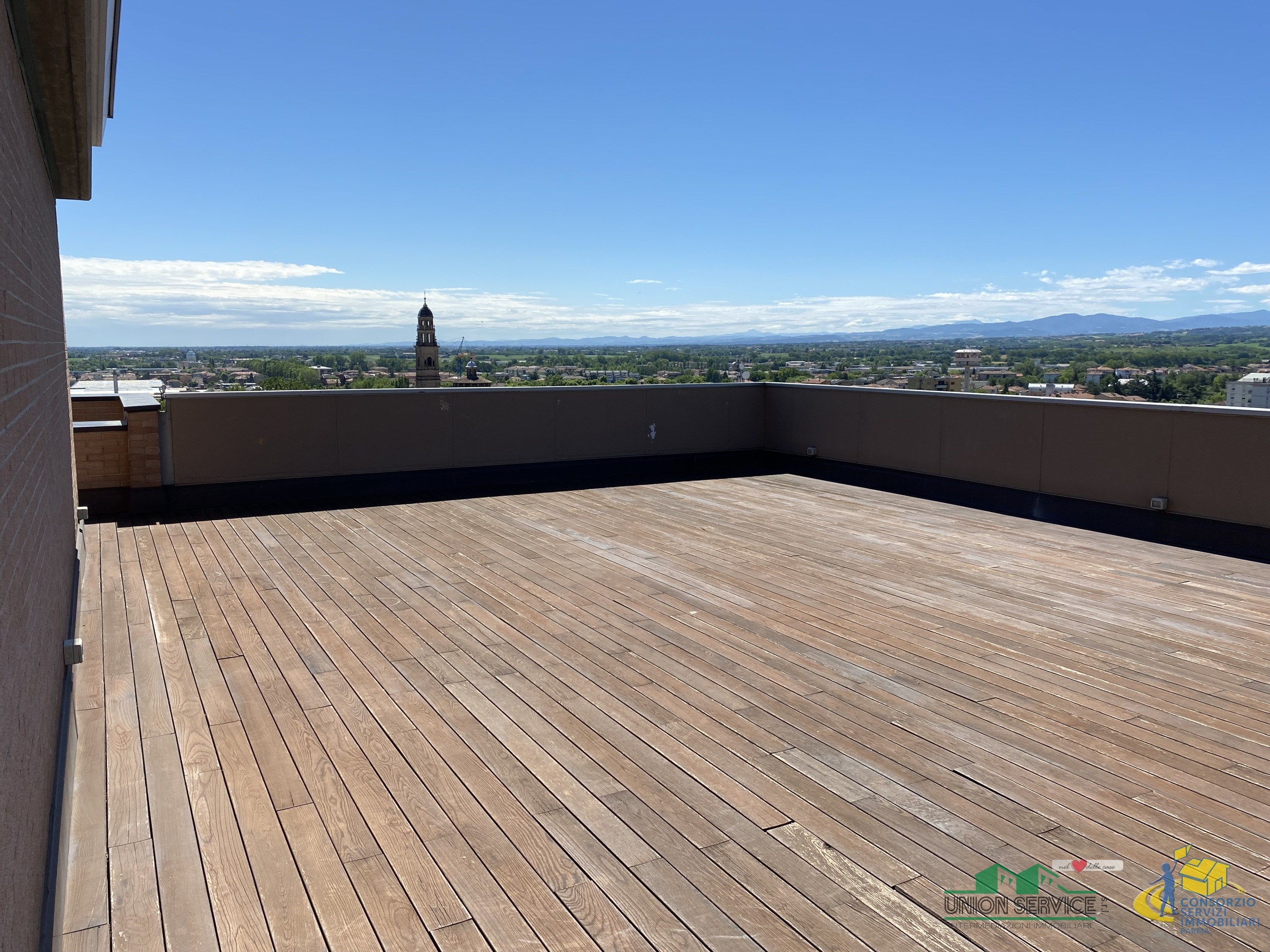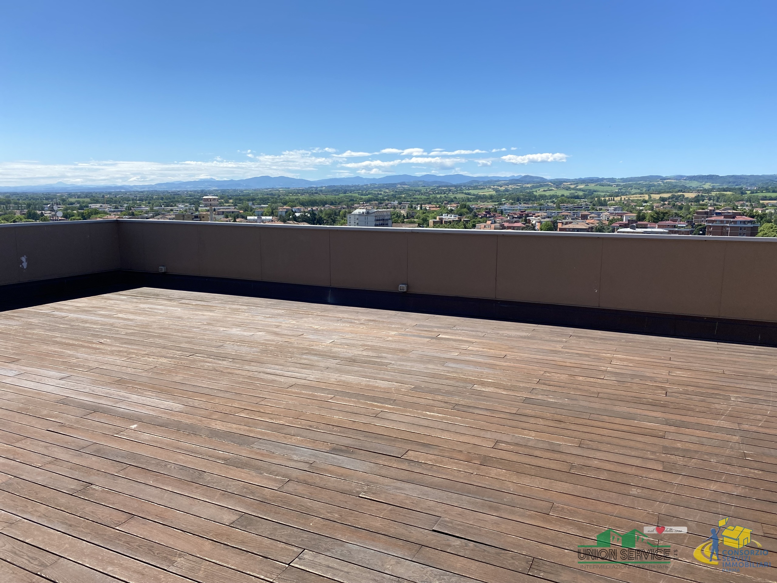 FIDENZA CENTRO: proponiamo in vendita prestigioso attico al 12° e ultimo piano con stupenda vista panoramica a 360°, dotato di loggia, terrazzi e un grande terrazzo (100 mq). L'immobile è di recente realizzazione, è servito da 3 ascensori al piano, è completamente e finemente arredato con stile moderno, quasi mai abitato.