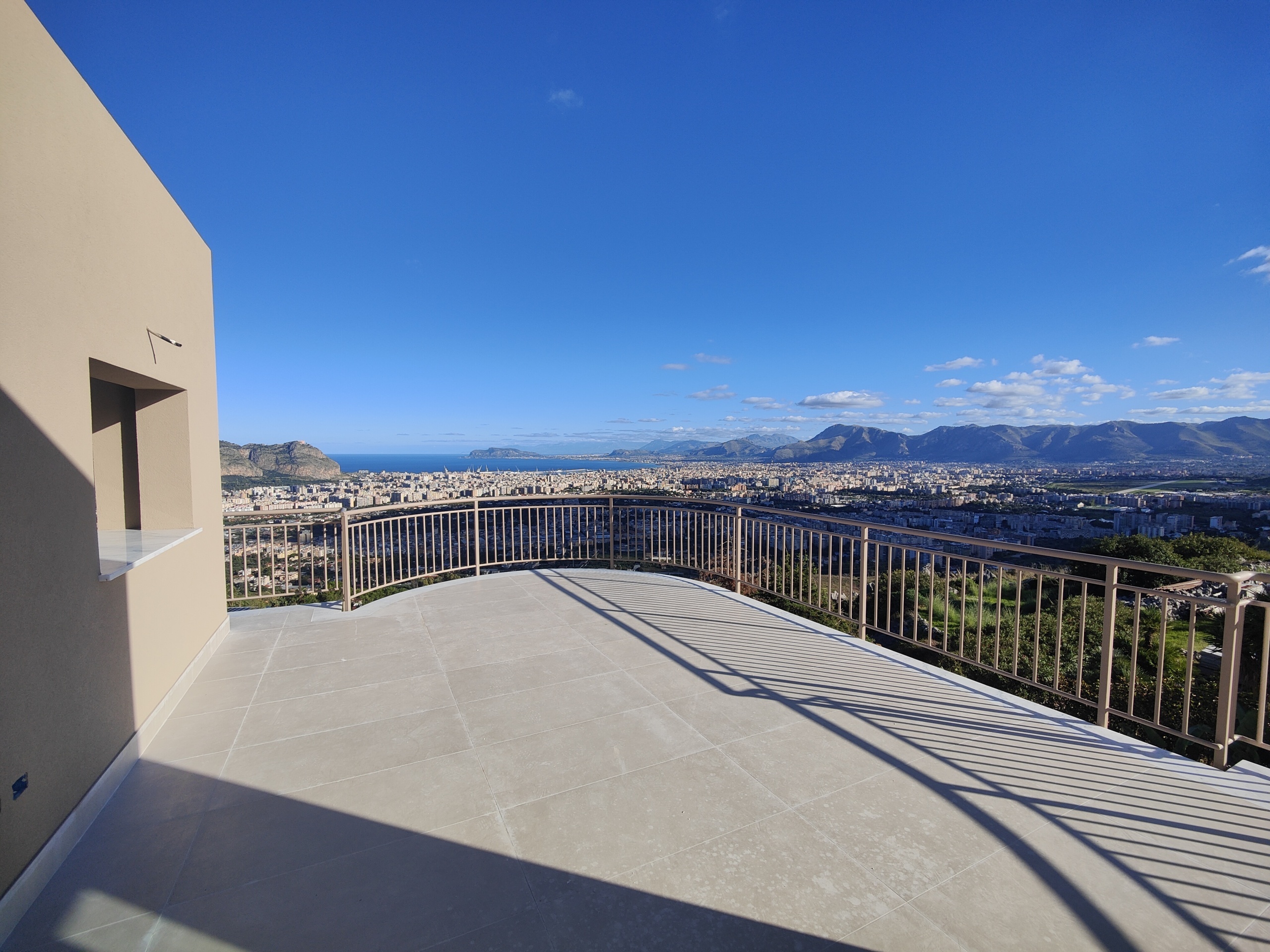 Splendido Attico con ascensore interno provvisto di 4 grandi terrazzi a sbalzo con vista a 360° su Palermo da Mondello al Golfo di Palermo fino a Mongerbino di metri quadrati 150 composta ingresso, lavanderia, cucina abitabile, salone doppio, camera matrimoniale con bagno ensuite, altra camera, bagno oltre balconi.