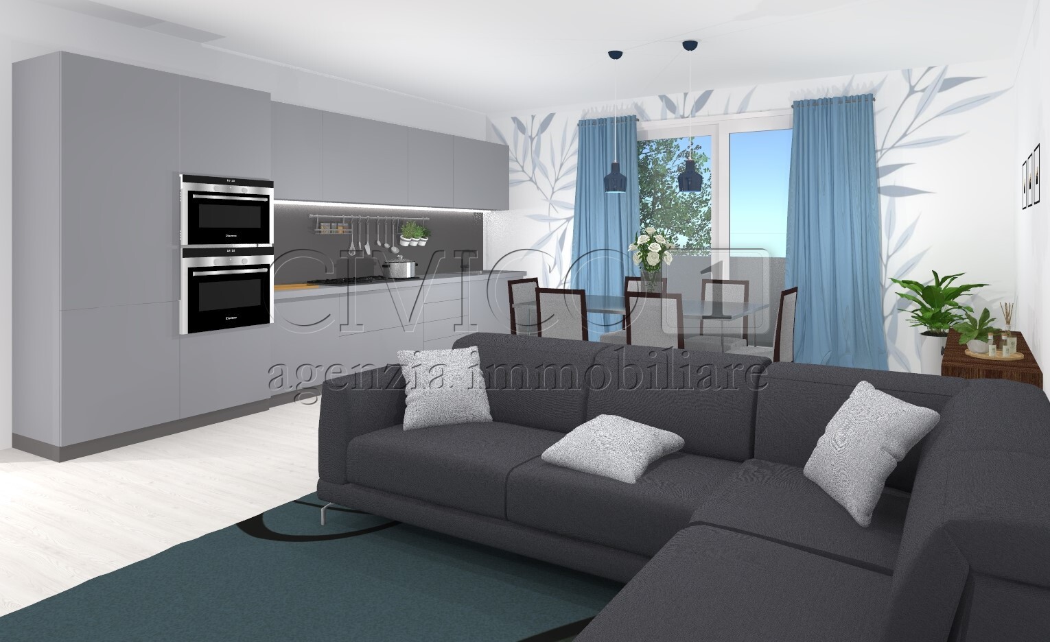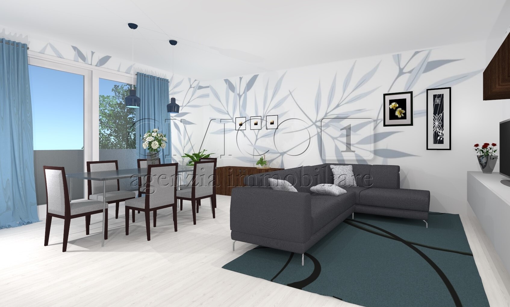 Composizione: -luminosa zona giorno open space con angolo cottura e accesso diretto al terrazzo living tramite ampia vetrata -stanza ripostiglio/ dispensa -due camere da letto - bagno finestrati -ulteriori due terrazzi Completa la soluzione un garage fuori terra.