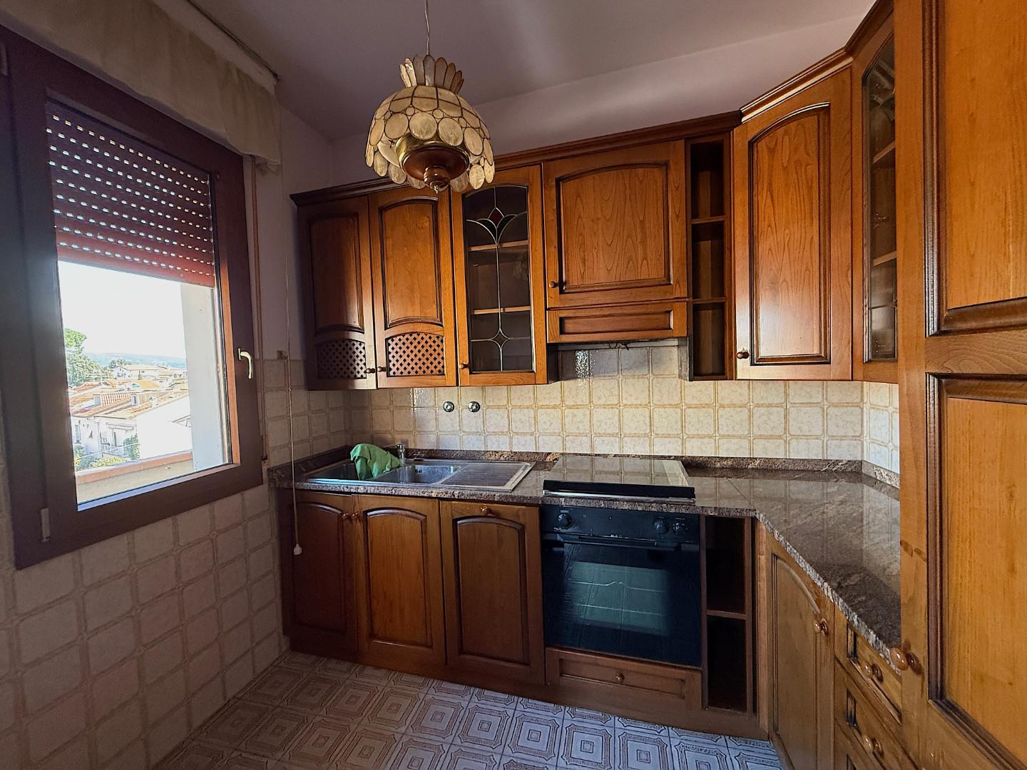 [ L'appartamento in palazzina ben tenuta e in ordine è libero sui tre lati ed è composto da ingresso, ripostiglio-locale tecnico, soggiorno che affaccia sul terrazzo di 100mq che per la sua posizione risulta molto riservato e panoramico, cucinotto con sala da pranzo con terrazzo, disimpegno per la zona notte composta da due grandi camere matrimoniali con terrazzo e bagno finestrato.