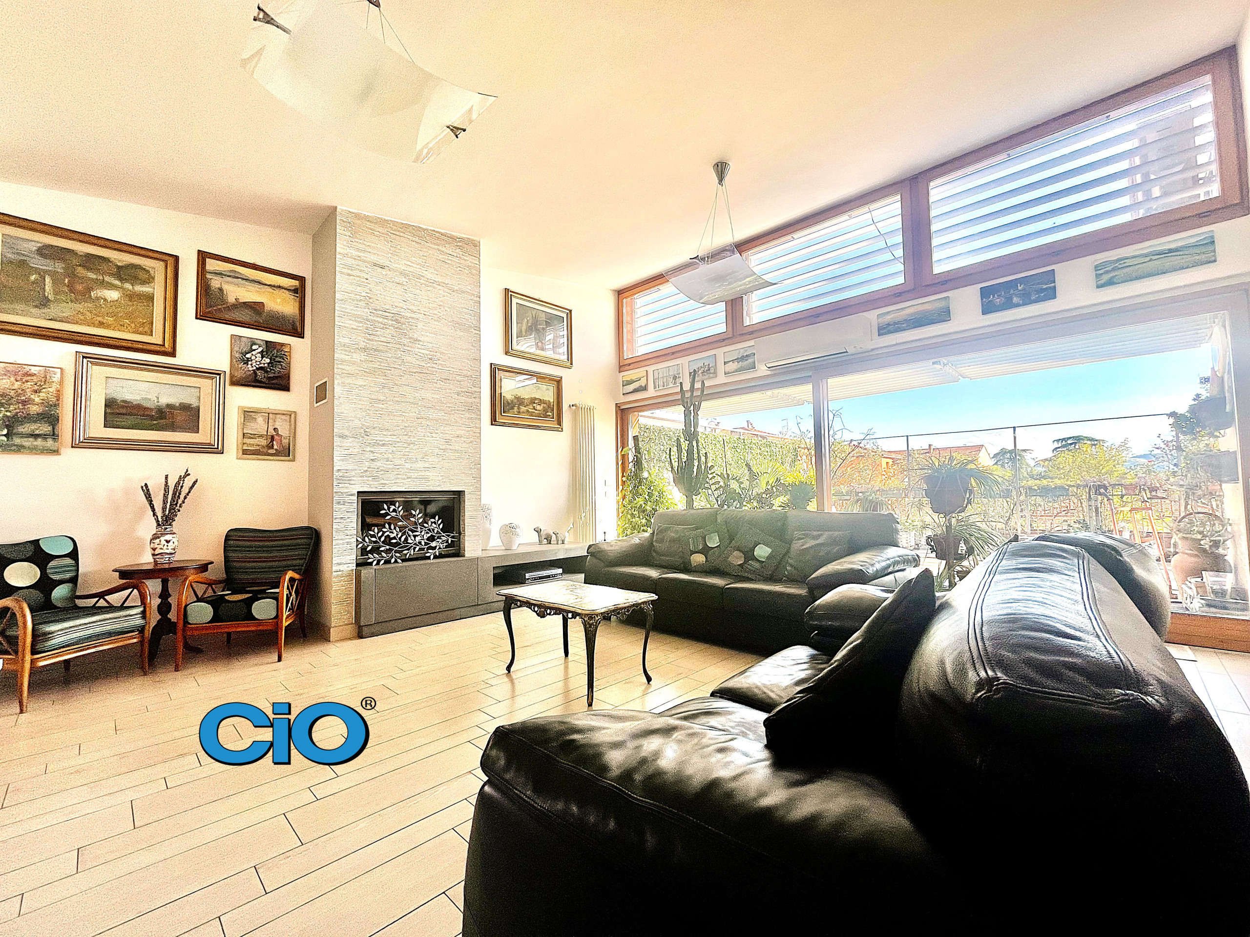 Ampio ingresso, zona giorno living di 60 mq. con camino e accesso diretto alla terrazza, ampia cucina abitabile, 3 camere da letto, tre bagni finestrati e lavanderia.