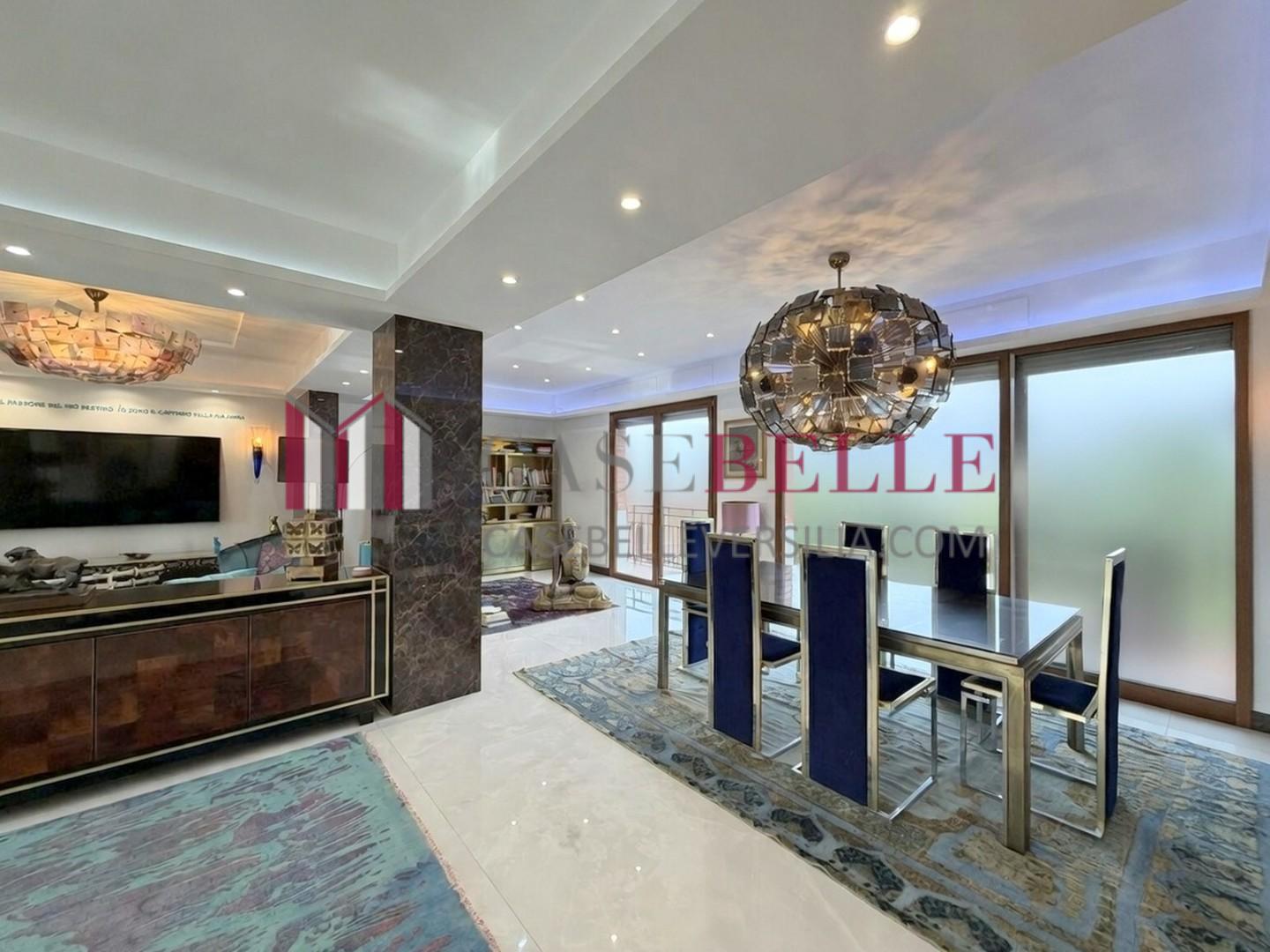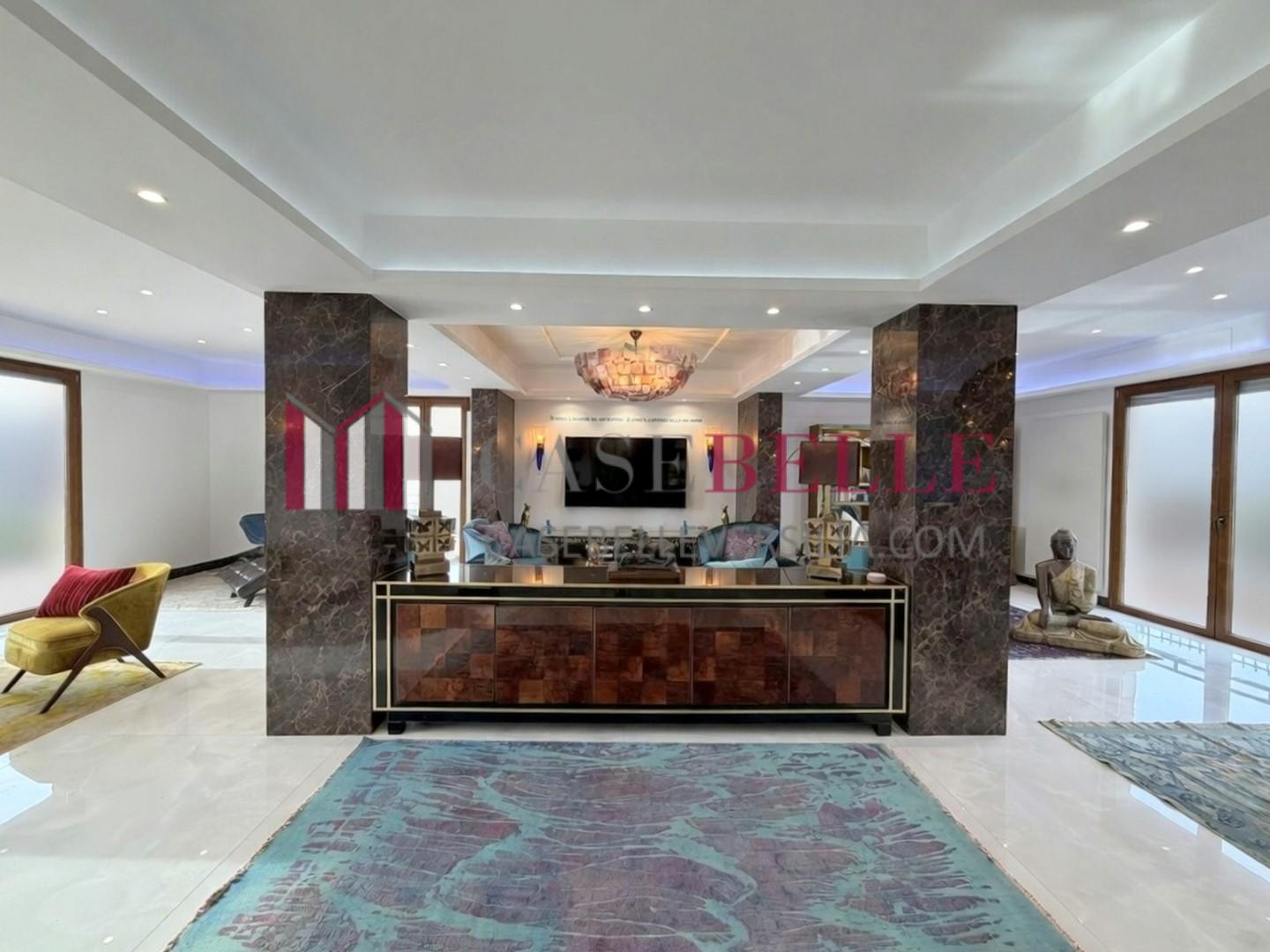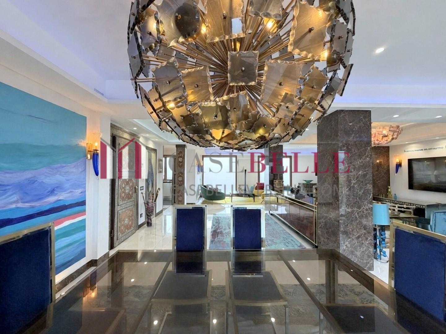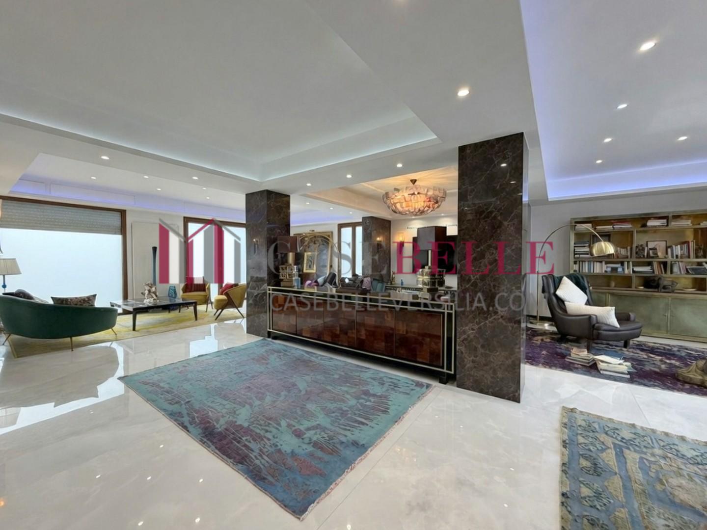 L'ingresso introduce direttamente in un ampio living di rappresentanza, caratterizzato da una straordinaria luminosità naturale garantita dalla tripla esposizione.