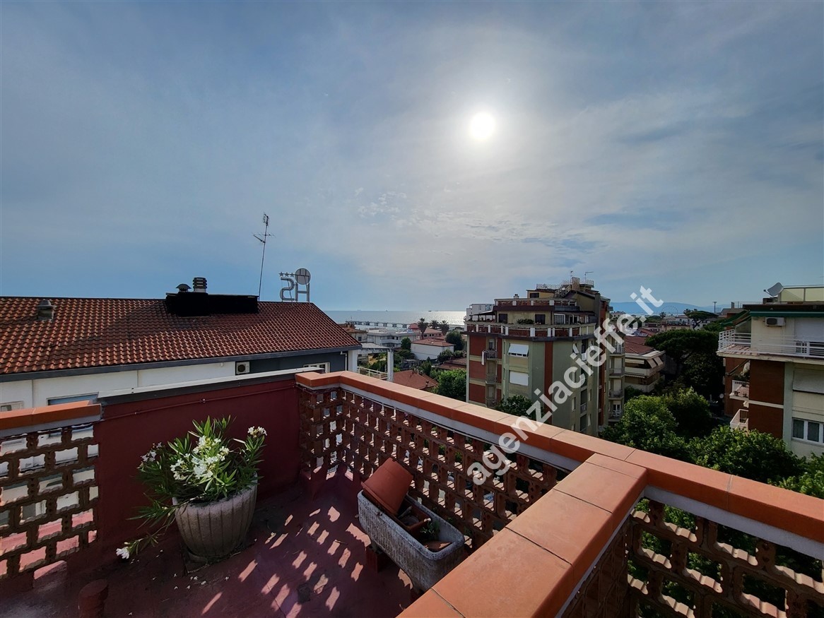 Elemento distintivo e di assoluto pregio è il magnifico lastrico solare esclusivo di circa 130 mq: un autentico rooftop privato da cui ammirare una vista straordinaria che spazia dal blu del mare al profilo delle Alpi Apuane.