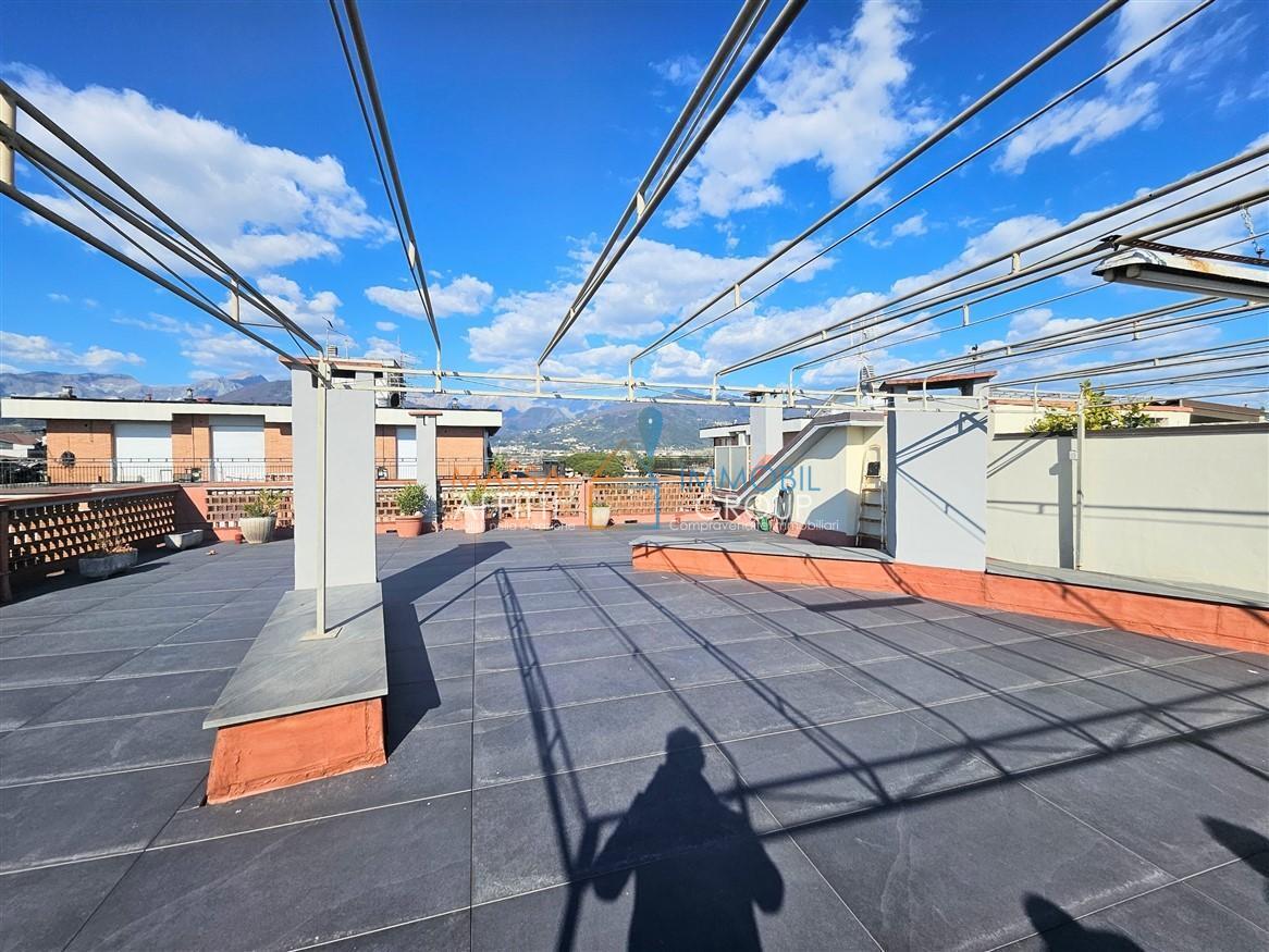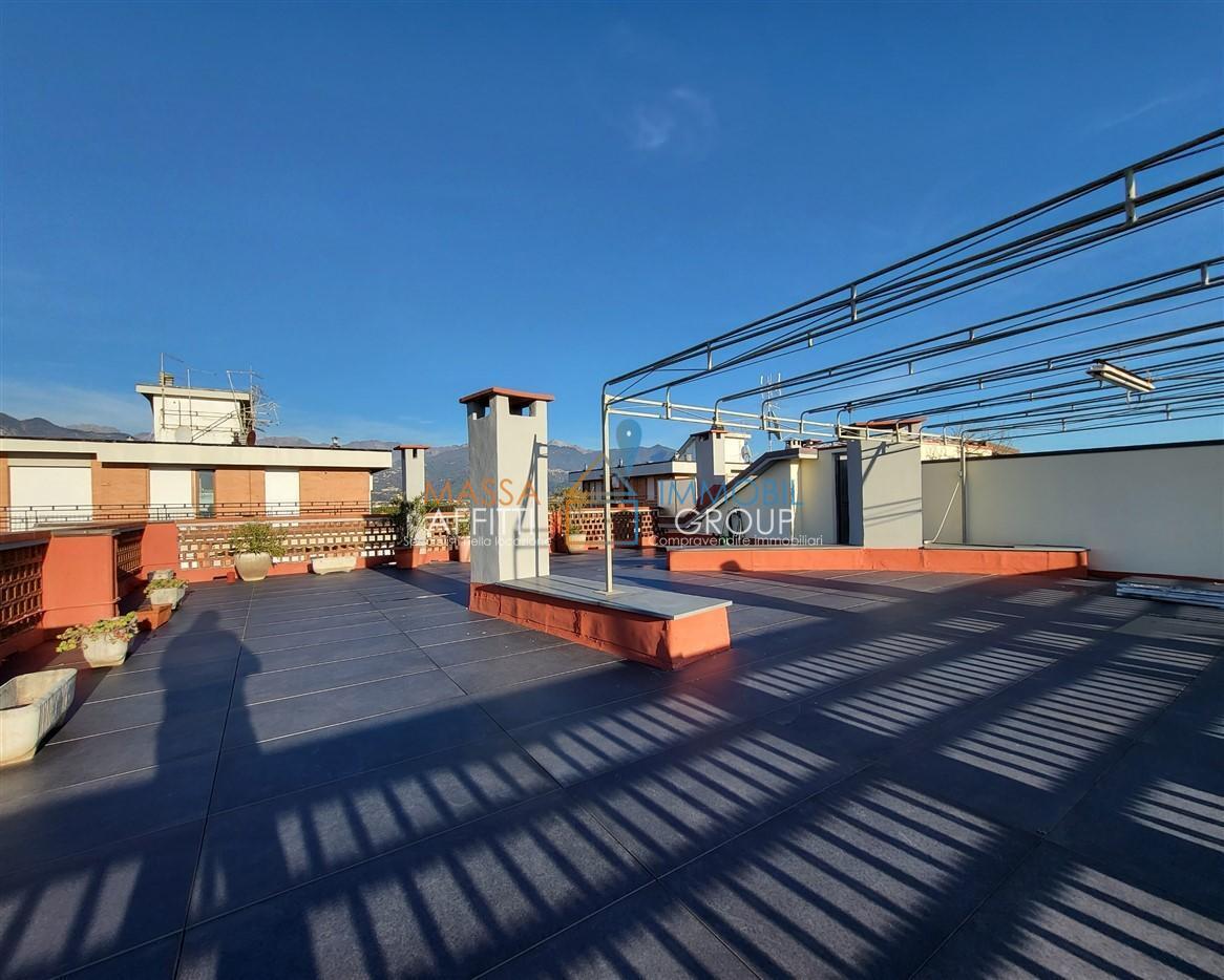 Elemento distintivo e di assoluto pregio è il magnifico lastrico solare esclusivo di circa 130 mq: un autentico rooftop privato da cui ammirare una vista straordinaria che spazia dal blu del mare al profilo delle Alpi Apuane.