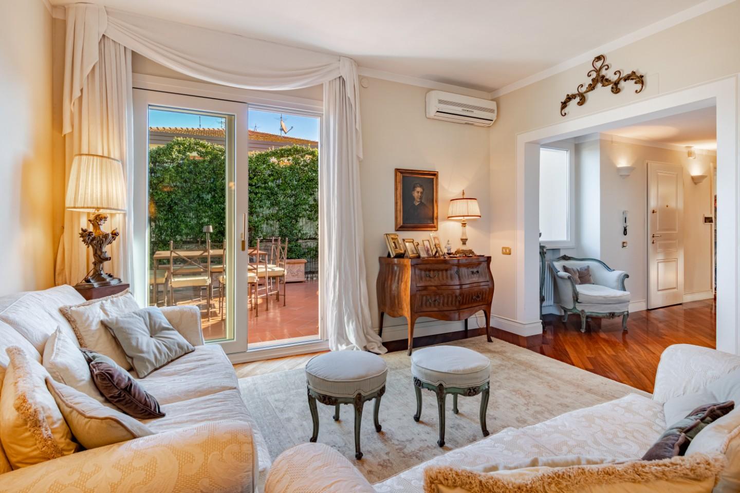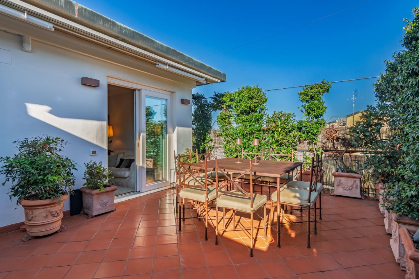 Si compone di ingresso tradizionale, salone doppio da cui si accede a bellissima e vivibile terrazza, cucina abitabile con balcone, ampio studio/ salotto, 3 spaziose camere nella zona notte di cui 2 con balcone; doppi servizi.