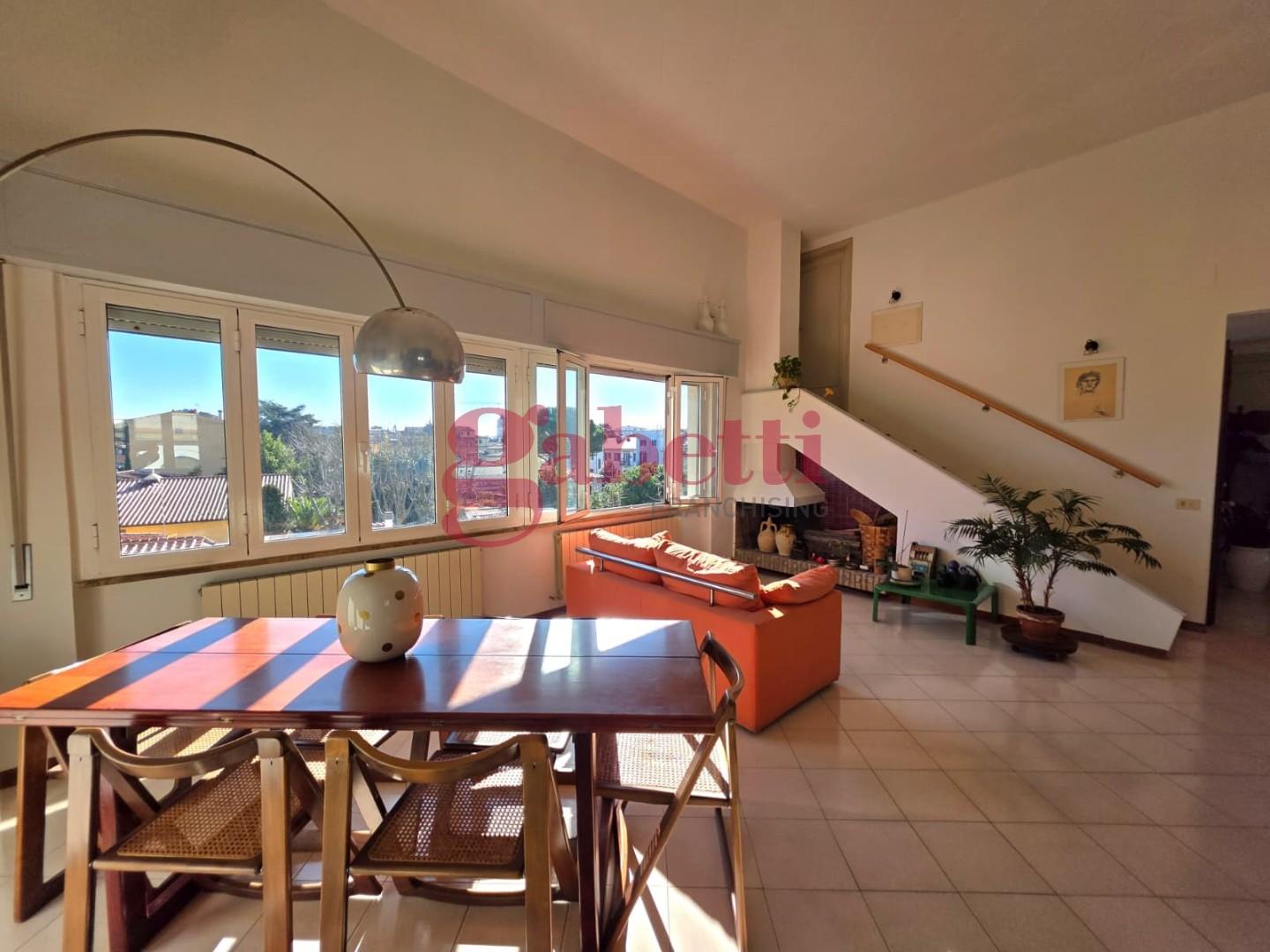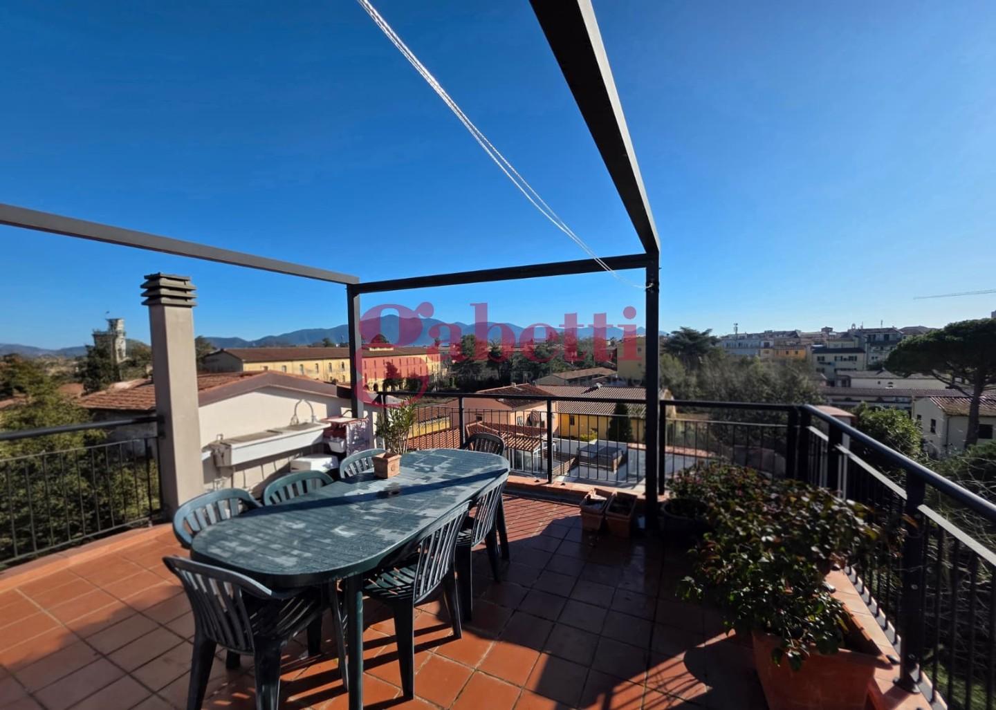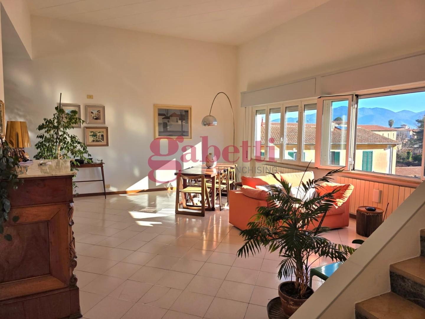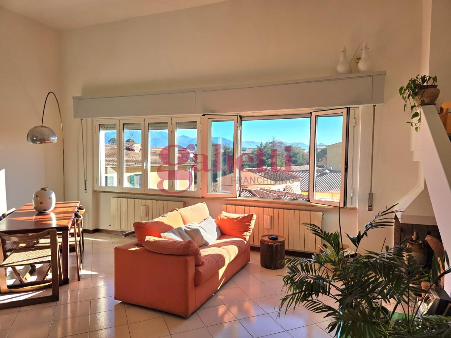 Le scale presenti nel soggiorno conducono alla soffitta ad uso ripostiglio e alla meravigliosa terrazza che permette di ammirare, sopra i tetti del centro, il panorama dai Monti Pisani e le Alpi Apuane fino al mare.. Completa la proprietà, al piano terra, un comodissimo locale di deposito di 10 mq. Con poche modifiche è possibile realizzare la terza camera ed un ulteriore bagno.