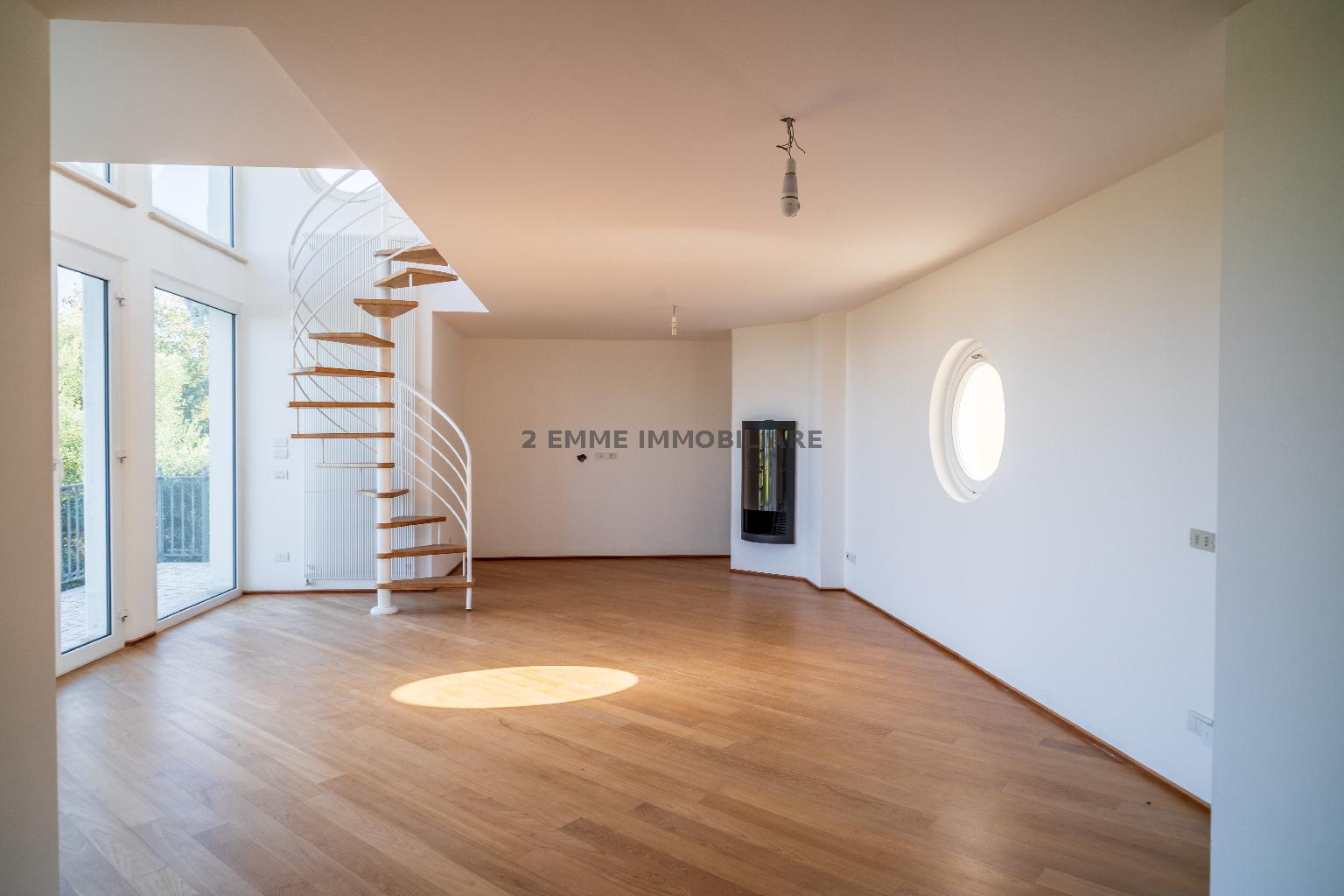 Dal soggiorno con cucina a vista si accede tramite scala al torrino e al terrazzo.