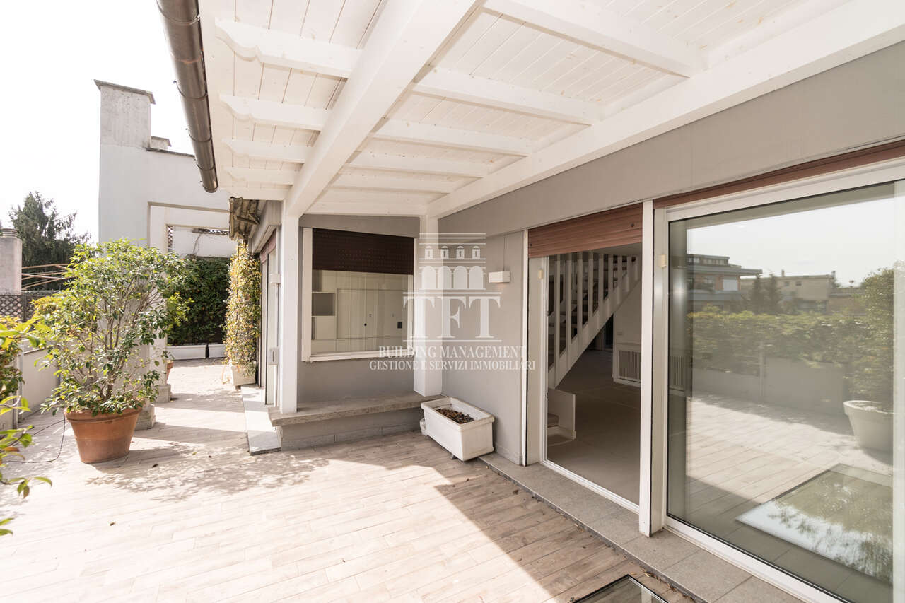 A pochi passi dalla rinomata piazza Ponte Milvio, all'interno di un esclusivo comprensorio immerso nel verde con portineria H24 e doppio ingresso, proponiamo in vendita un raffinato attico e superattico di 280 mq, recentemente ristrutturato e arredato con cucina.