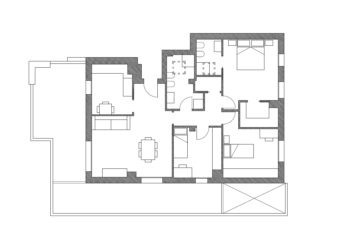 Locato fino al 2028, tenuto in ottimo stato Attico con terrazza semiperimetrale, organizzato in: soggiorno, cucina, 3 camere, cabina armadio, 2 bagni e ripostiglio.