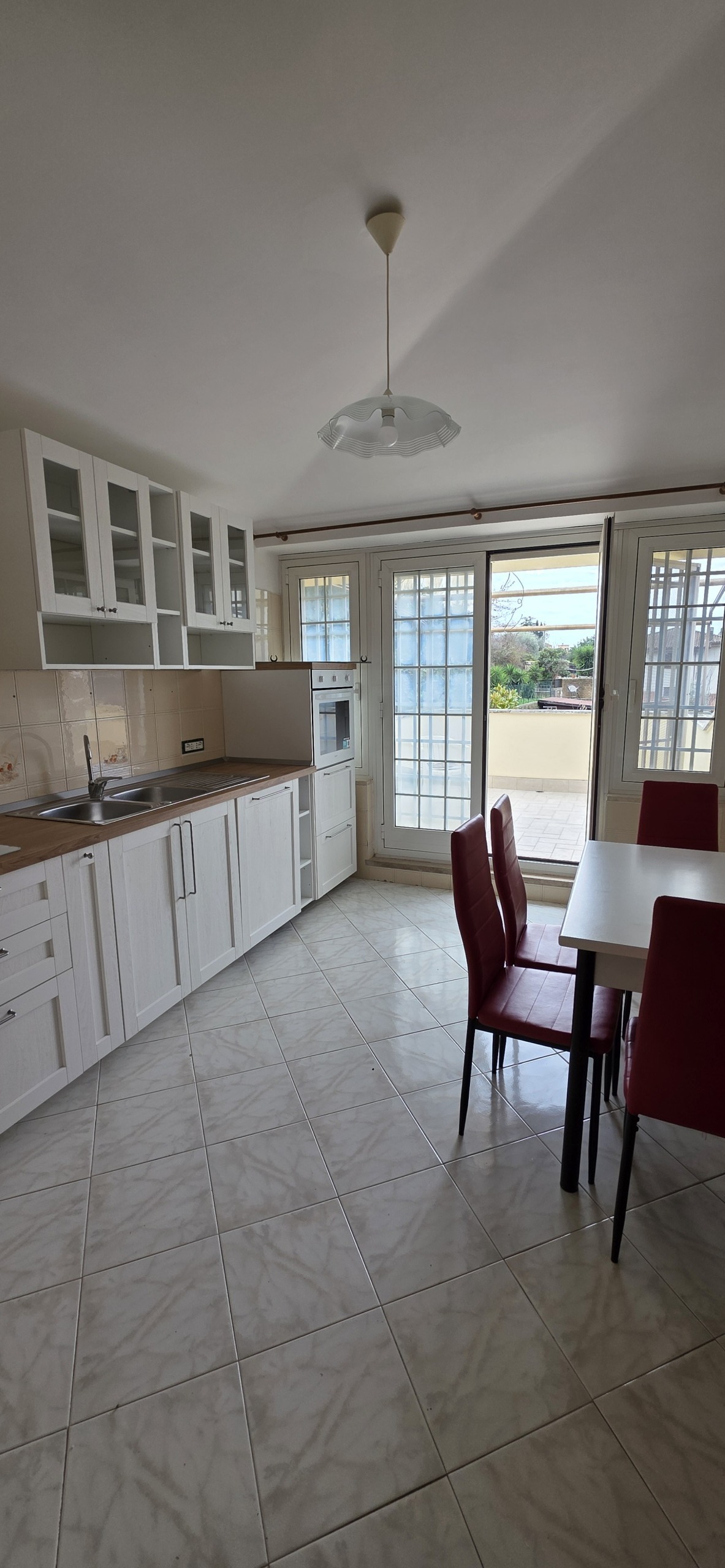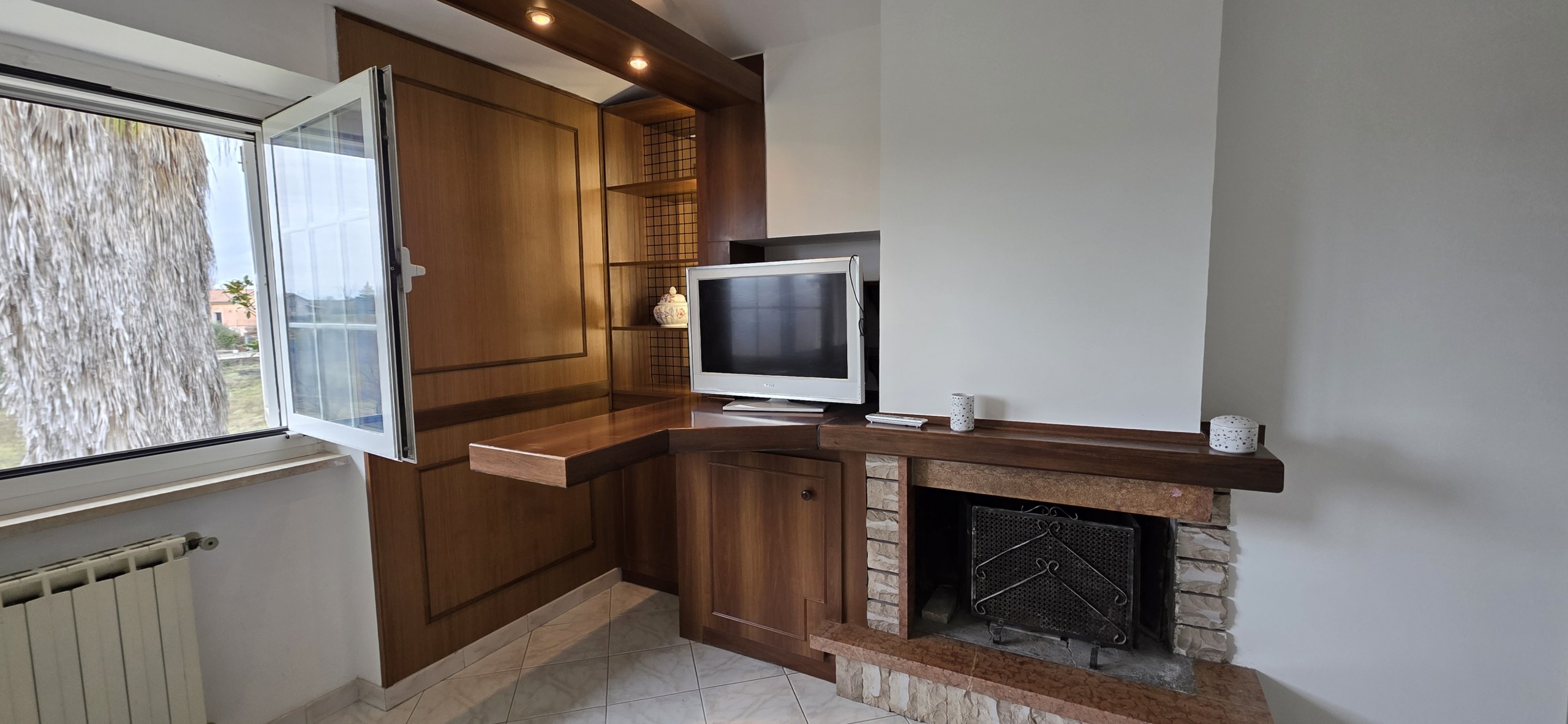 Morlupo : Appartamento in villa , piano attico primo piano , con entrata indipendente , completamente ristrutturato con arredo nuovo , disponiamo di un appartamento , luminoso , nuovo , arredato , composto da Soggiorno con camino , cucina abitabile con terrazzo vivibile bagno lavanderia , camera matrimoniale , bagno con doccia nuovo moderno , completa la proprietà un posto macchina.