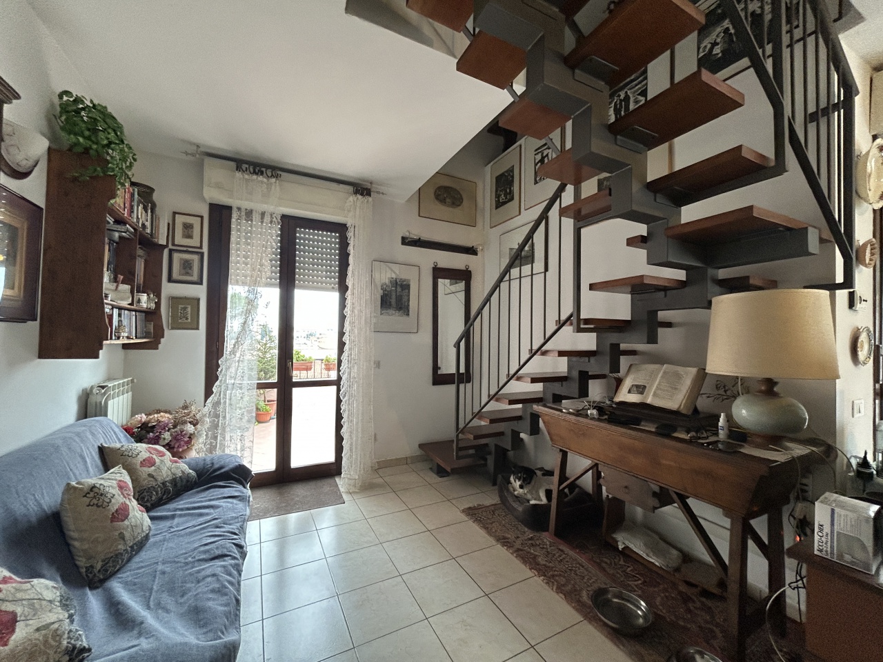 L'immobile si sviluppa su due livelli, al terzo e quarto piano, e si compone di: al piano terzo ampio e luminoso soggiorno open-space con accesso diretto a un'ampia terrazza e angolo cottura con accesso diretto a un balcone di servizio; tramite scala in legno a vista si accede al piano quarto dove si trova una luminosissima camera matrimoniale con porta finestra per accedere a un terzo grande terrazzo panoramico.