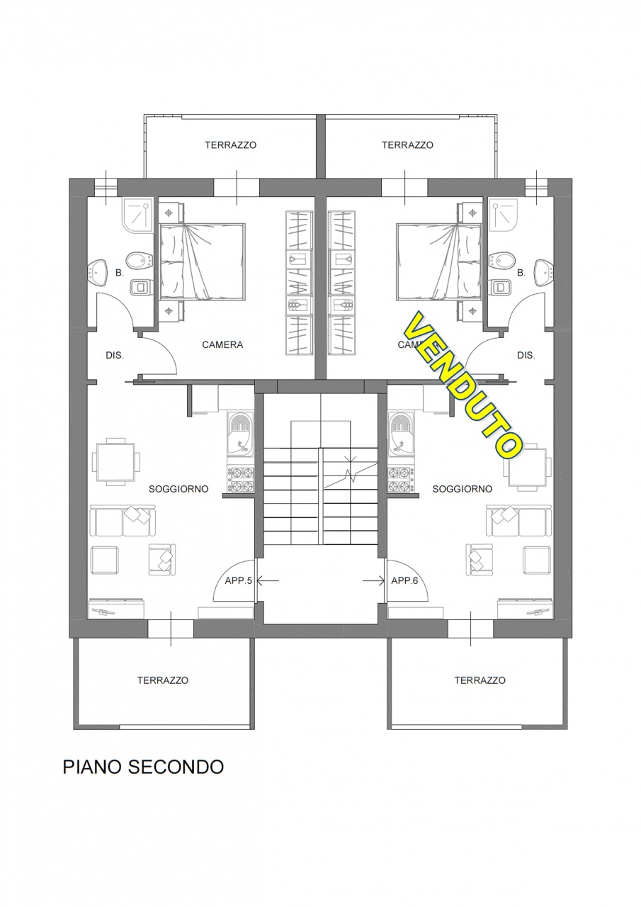 Grosseto via Svizzera zona Cittadella nella nuovissima lottizzazione residenziale in costruendo e modernissimo fabbricato vendesi appartamento al piano attico (piano secondo e ultimo) di vani 2 mq.50 e composti da soggiorno con zona cucina, disimpegno, camera matrimoniale, bagno con finestra e due terrazze per totali mq.13. Completa la proprietà un garage di mq.14 posto al piano terra.