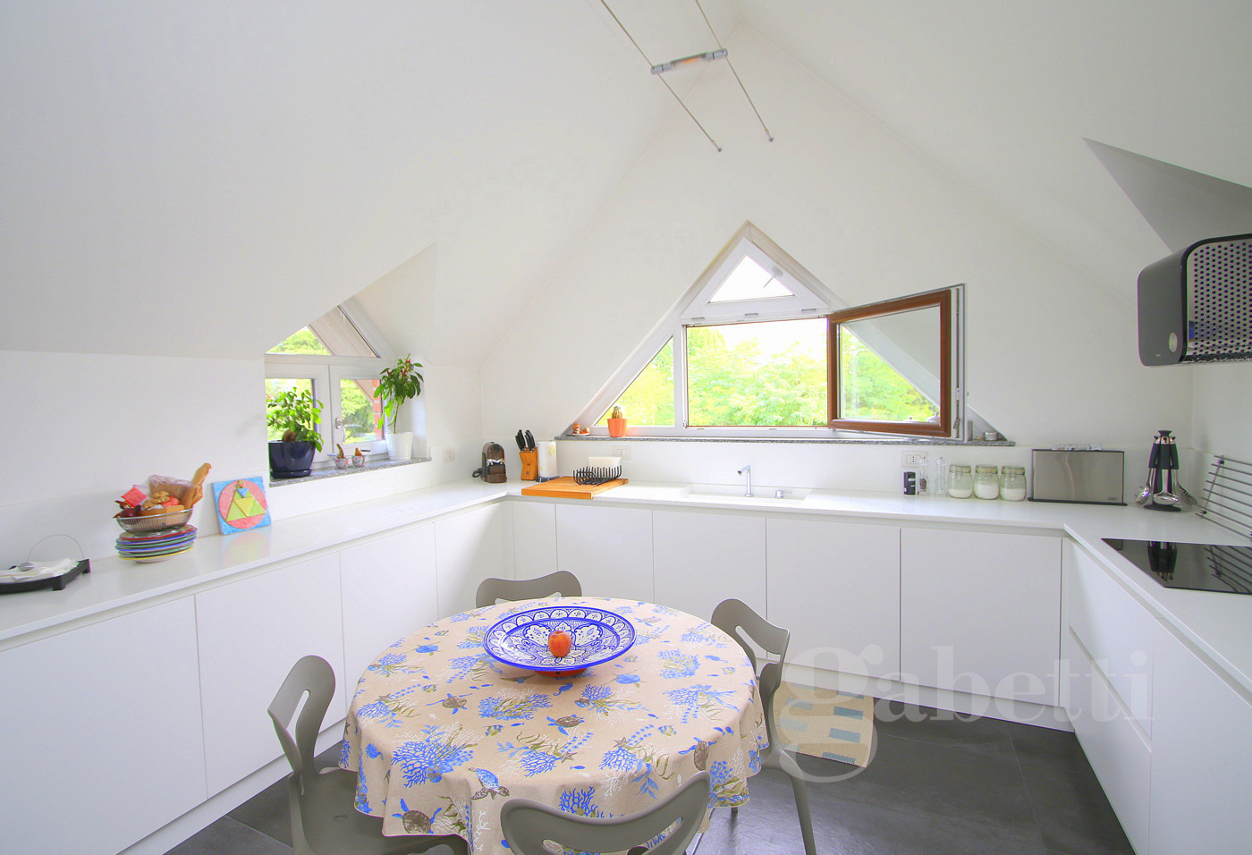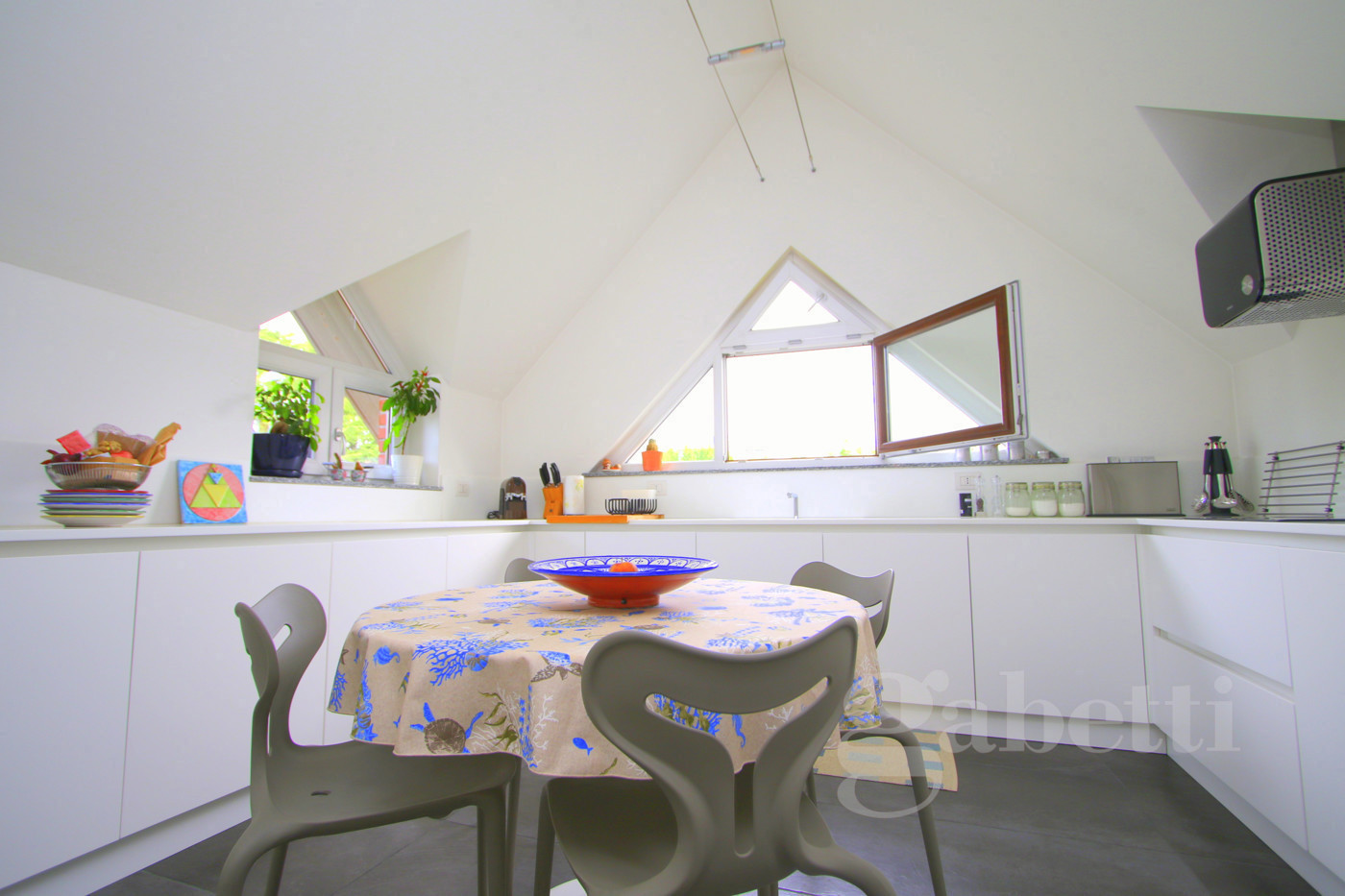 Questa soluzione si distingue per gli ampi spazi movimentati dai soffitti a spiovente, nonch per le ricercate finiture che caratterizzano gli ambienti.