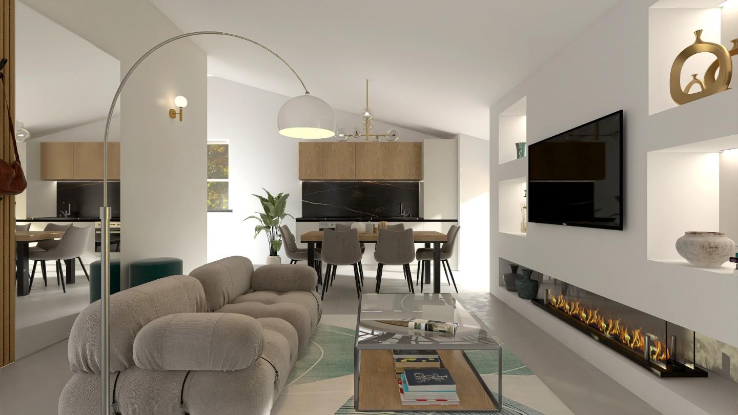 in zona residenziale tranquilla nel verde, proponiamo in vendita elegante attico in una palazzina attualmente al grezzo, elevata su 3 piani e già suddivisa in 4 unità immobiliari distinte, ciascuna corredata da giardino esclusivo e posti auto. Il progetto prevede il completamento dei lavori mediante interventi mirati a garantire elevate prestazioni energetiche ed un alto livello di comfort abitativo: è prevista una coibentazione interna per migliorare lisolamento termico, verranno realizzati impianti completamente nuovi alimentati da pompe di calore di ultima generazione, sarà installato un impianto fotovoltaico a servizio di ogni unità. Lappartamento in vendita, denominato Altana Verde, di circa 85 mq, coniuga comfort, efficienza energetica e una disposizione degli spazi pensata per chi cerca privacy e qualità della vita. La proprietà si compone di: - zona living ampia e luminosa, con cucina a vista, perfettamente integrata e affacciata sul verde circostante.